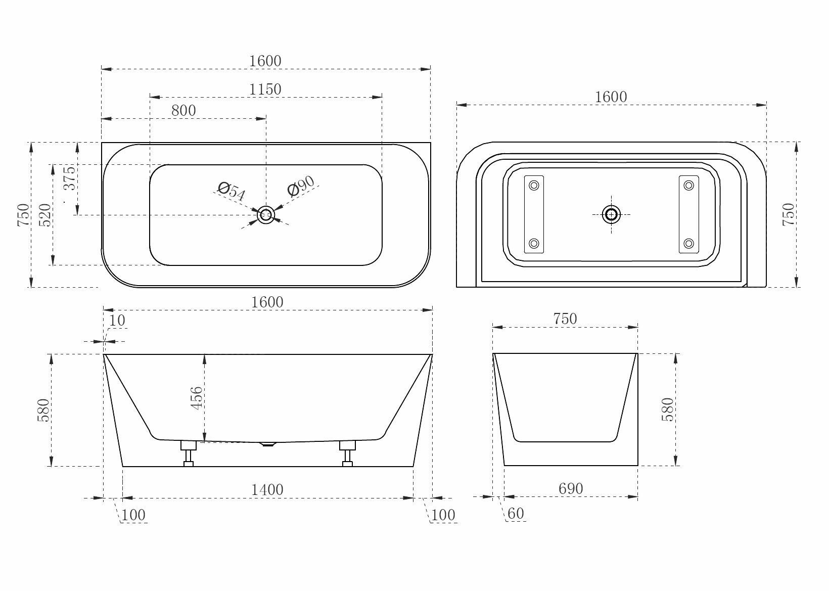 Модель: 160х75 AB9223-1.6 без гидромассажа