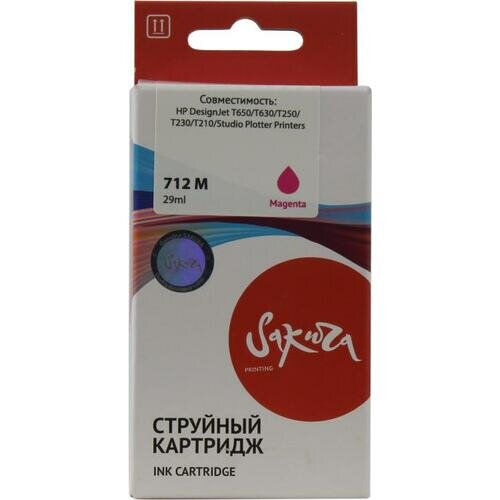Картридж Sakura 3ED68A (№712 Magenta) струйный для HP пурпурный чернил 29 мл. SI3ED68A