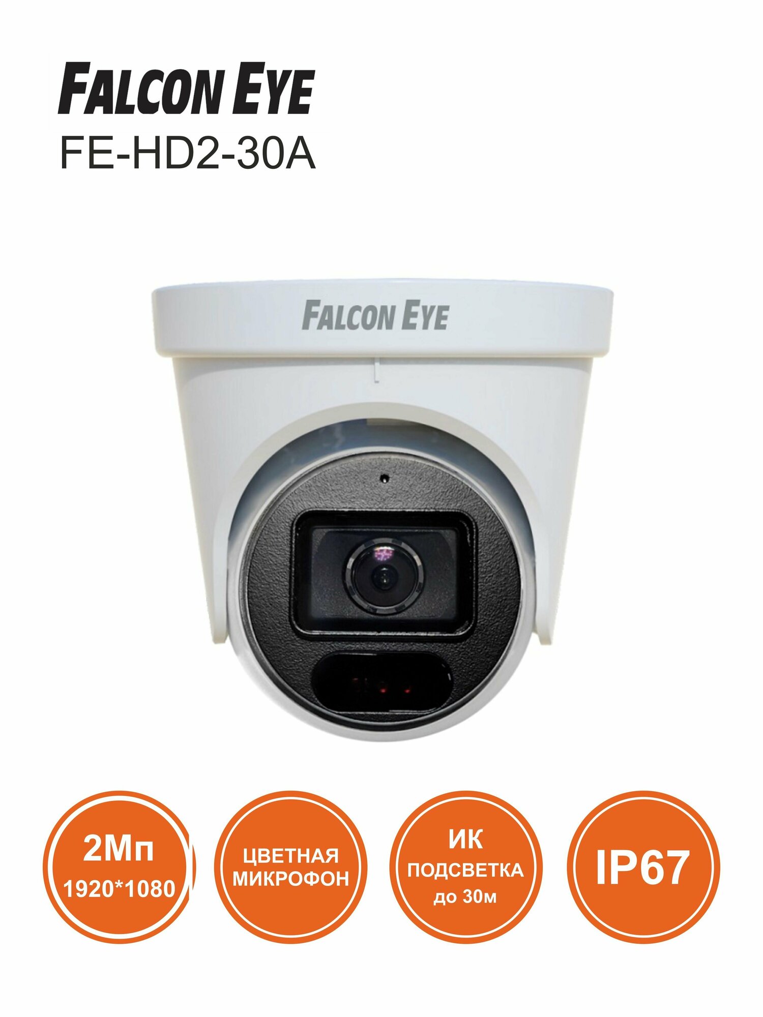 Видеокамера Falcon Eye купольная универсальная 2Мп (AHD TVI CVI CVBS) видеокамера с ф FE-HD2-30A