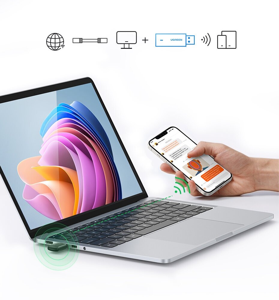 Адаптер UGREEN - это сетевое устройство, позволяющее подключить компьютер к Wi-Fi сети. Двухдиапазонный Wi-Fi адаптер для стабильного Wi-Fi соединения. Адаптер UGREEN возможно использовать как точку доступа Wi-Fi для обмена данными. Легкий и портативный дизайн. Легко носить с собой куда угодно.