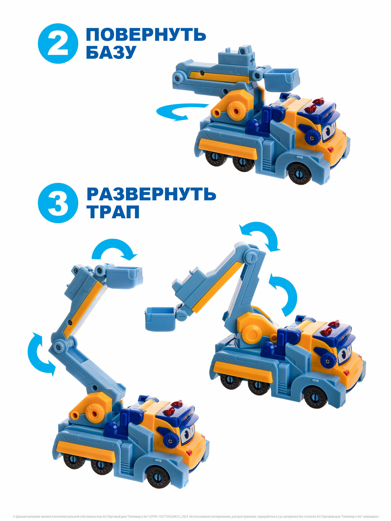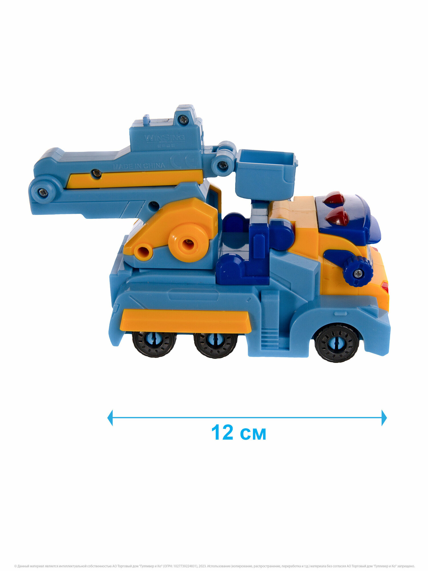 Машина бульдозер с ковшом из серии строительные машины по мотивам мультсериала Команда Steam и Автобус Гордон понравится всем любознательным малышам. У машинки яркий желтый цвет корпуса, синие элементы и ковш, веселая мордочка, а также закругленные безопасные углы и прочные колеса. А если нажать на кнопку, то машина для малышей поменяет выражение глаз. Все машинки строительная техника отличаются высокой износоустойчивостью и оснащены подвижными элементами: трап или кран у грузовика, ковш у бульдозера, подвижные элементы у автобуса др. Если собрать все шесть машинок линейки, то получится не просто отличный набор машинок строительной техники, но и можно будет собрать одного большого робота 33 см! Такая техника украсит и коллекцию других моделей автомобилей и спецтехники. Машинка детская поможет малышу развивать мелкую моторику рук, логическое мышление, воображение и координацию. Детские машинки - отличный подарок для мальчика или девочки на День Рождения, Новый Год, 23 февраля или 8 марта. Эскаватор произведен из качественного прочного пластика без посторонних запахов. Машина игрушка крепкая, надежная и прослужит долго. Детская машинка игрушка рекомендована для детей от 3-х лет. Упакована в прочную картонную коробку с блистером.