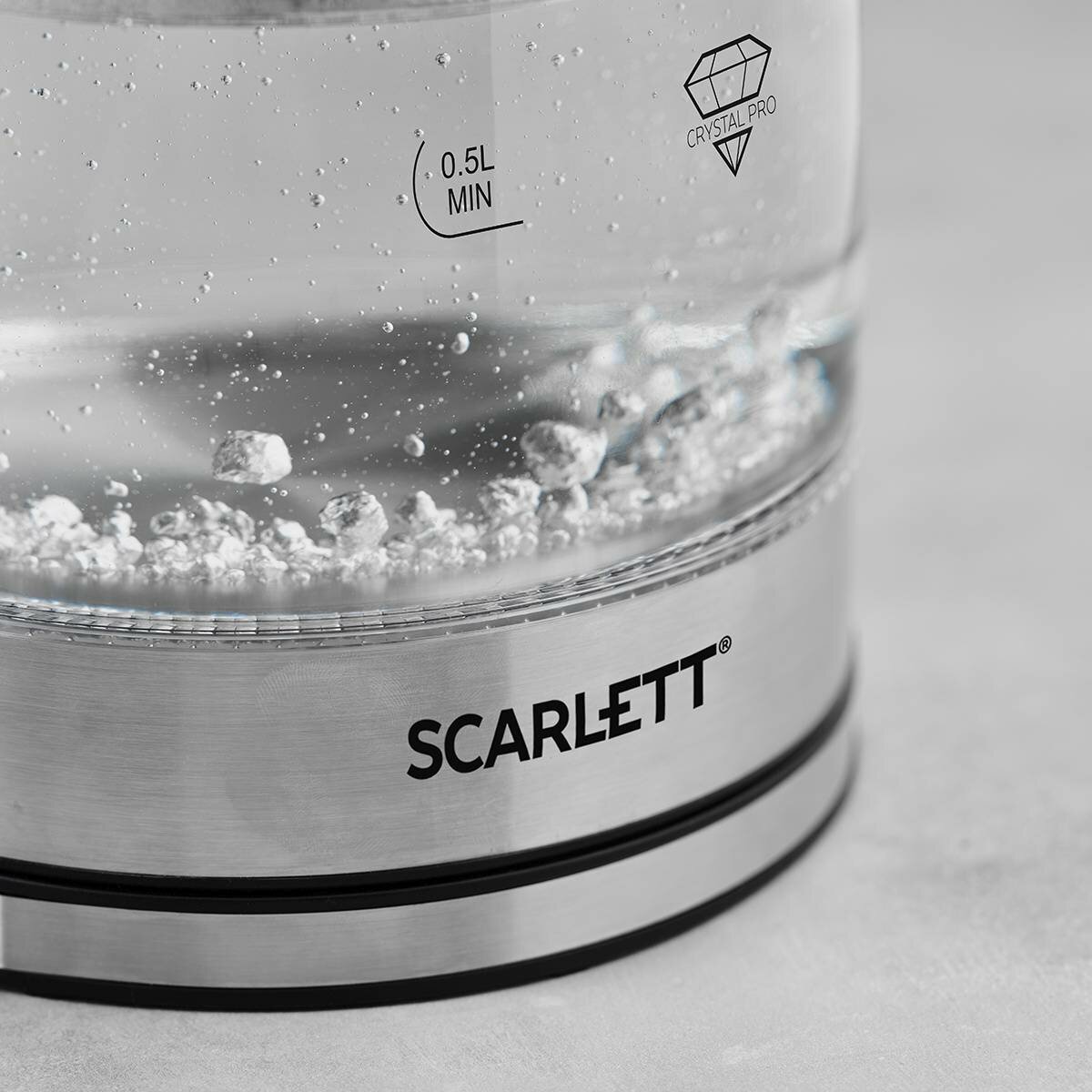 Чайник электрический Scarlett SC-EK27G70 серебристый/черный, объём 1.8л, мощность 1800Вт, материал корпуса: стекло