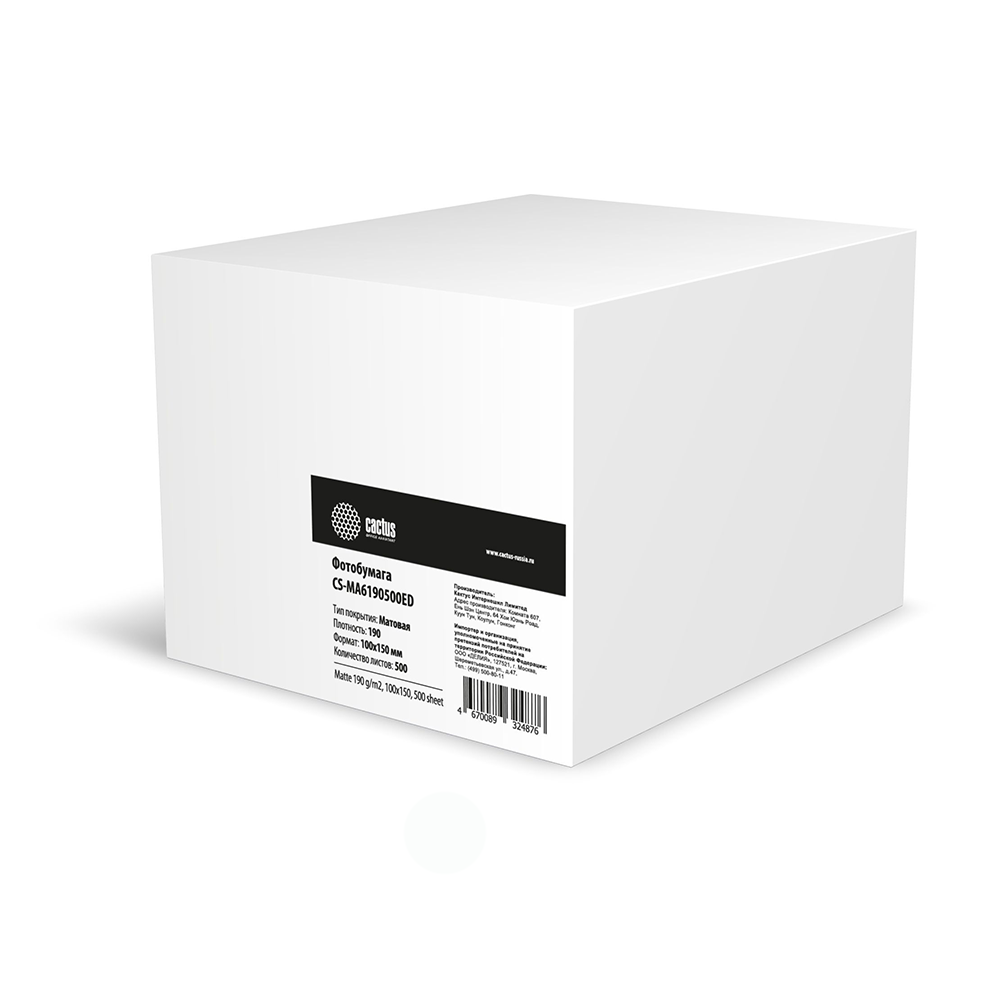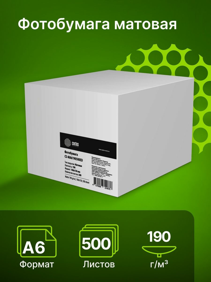 Фотобумага Cactus CS-MA6190500ED формат A6, плотность 190г/м2, 500 листов, покрытие матовое/матовое, для струйной печати, белый