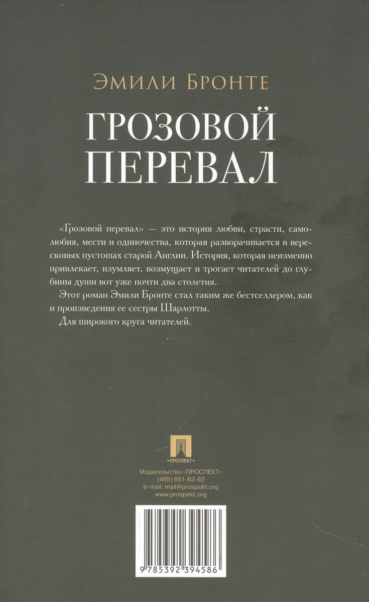 Книга: Грозовой перевал (Бронте Э.,пер.с англ.Вольпин Н.Д.); Проспект, 2024