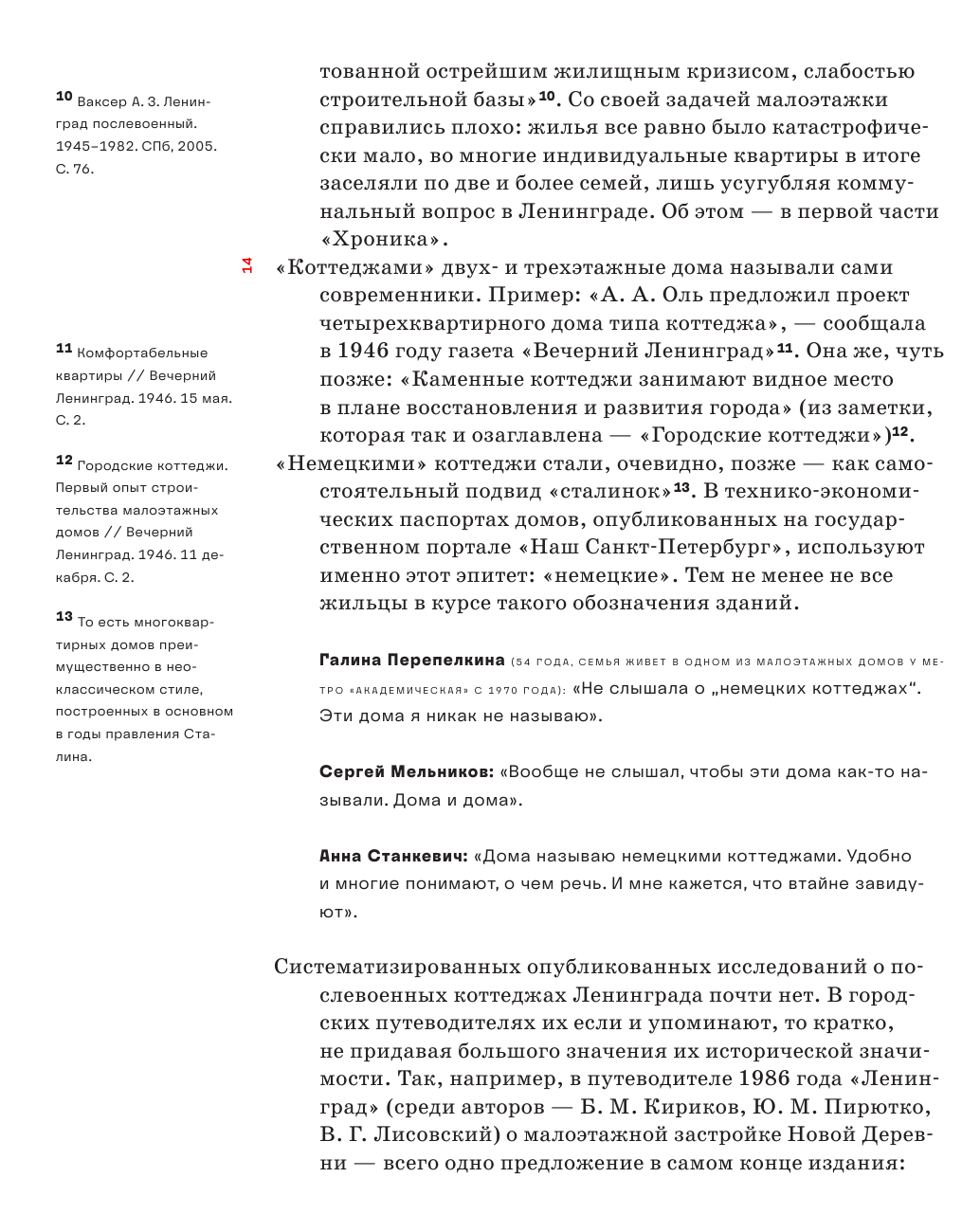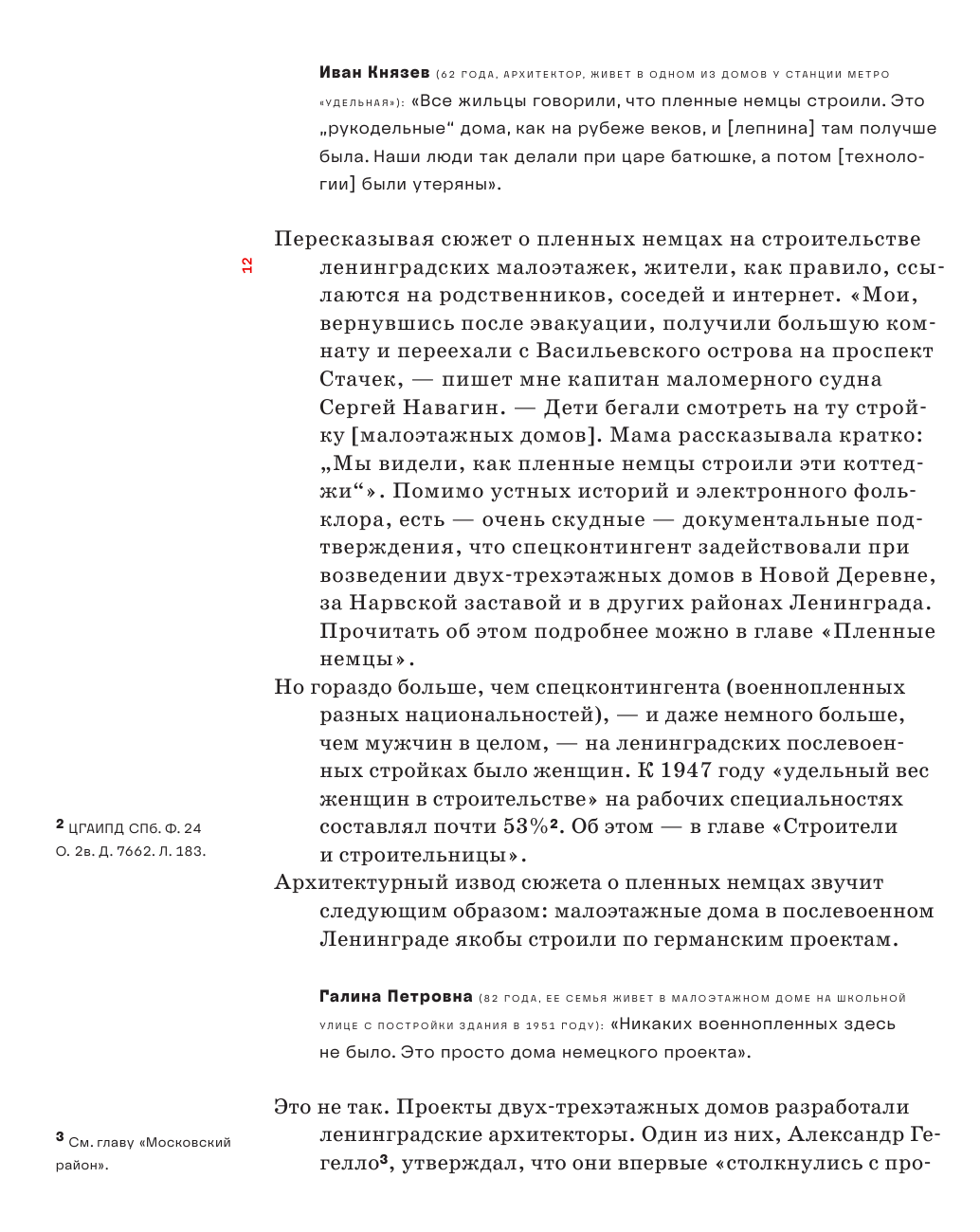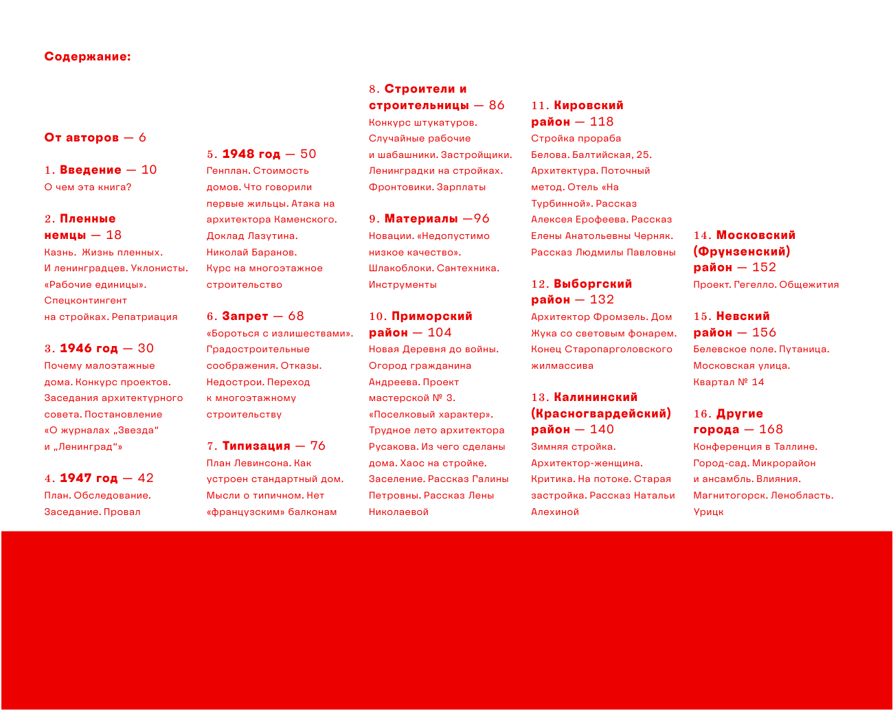 Книга "Двухэтажный Ленинград. Жилая застройка 1945–1950 годов" дополняет серию "Истории домов и их жителей". В издании впервые собраны материалы по истории малоэтажной жилой застройки и повседневной жизни Ленинграда первых послевоенных лет. Двух- и трехэтажные дома, построенные в то время, иногда называют "немецкими". Помимо уникальных архивных фотоснимков, а также чертежей 1940-х гг. в книгу включены сделанные недавно цветные фотографии всех построек в одном из малоэтажных кварталов за Нарвской заставой. Этот характерный пример архитектуры конца 1940-х оказался под угрозой сноса. Послевоенные рабочие районы редко становятся частью туристических маршрутов, но именно они, как представляется, хранят дух своего времени. Книга является увлекательным источником информации об одной из малоизученных страниц в истории Ленинграда и будет интересна как профессиональным исследователям, так и всем, кто любит Петербург.