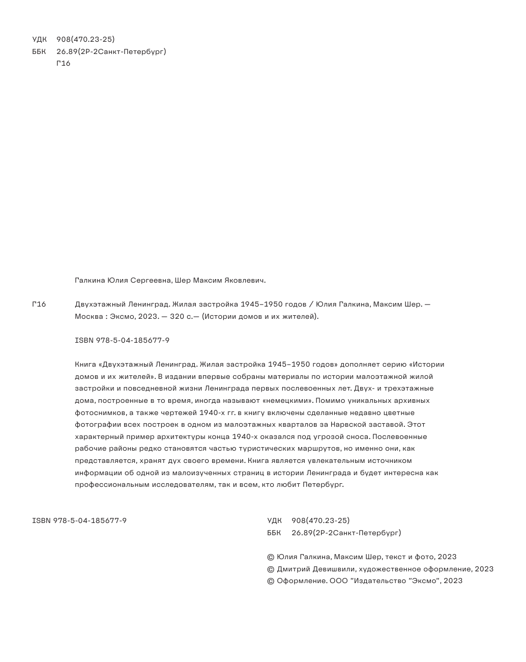 Двухэтажный Ленинград. Жилая застройка 1945–1950 годов (Максим Шер, Юлия Галкина); Эксмо, БОМБОРА, 2023