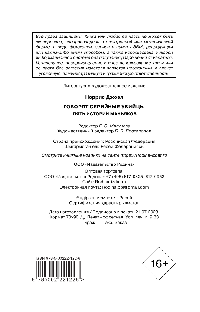 Говорят серийные убийцы. Пять историй маньяков (Джоэл Норрис); Эксмо, Редакция 1, 2024