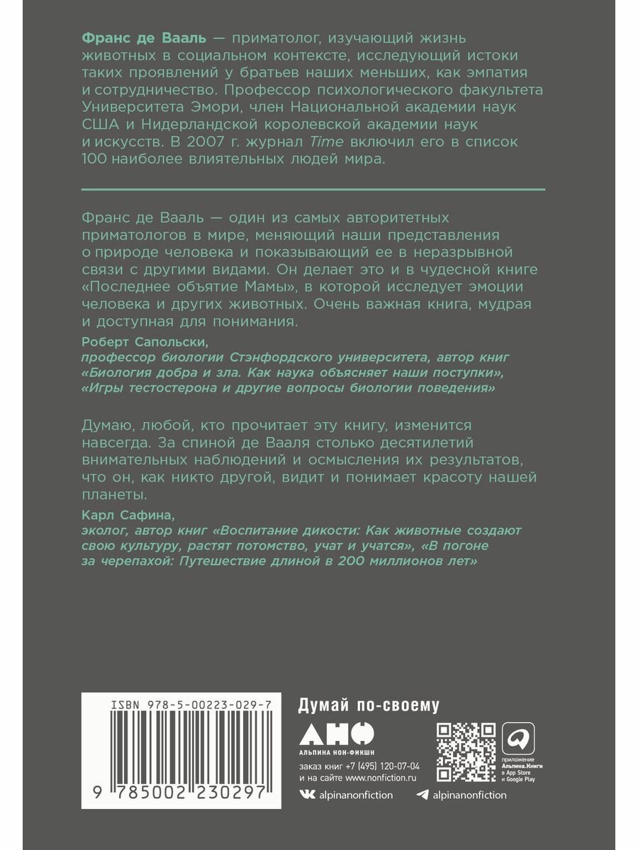 Последнее объятие Мамы: Чему нас учат эмоции животных (Франс де Вааль); Альпина Паблишер, 2023