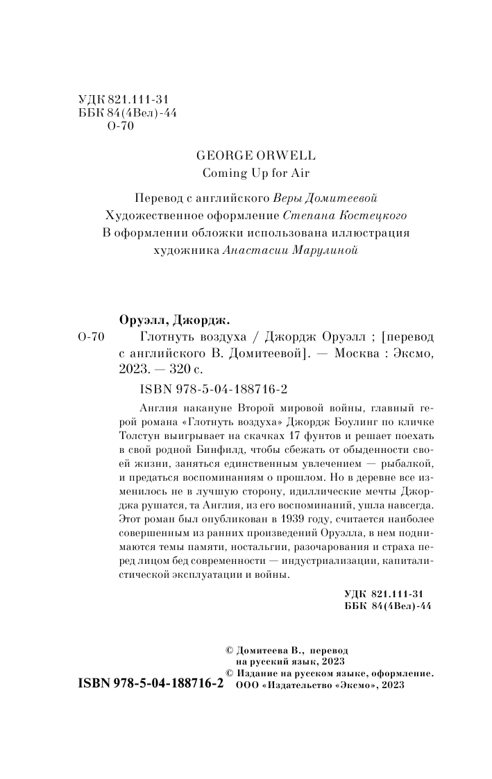Книга: Глотнуть воздуха (Джордж Оруэлл); Эксмо, Редакция 1, 2023