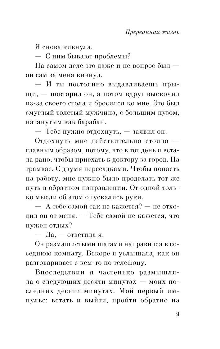 "Прерванная жизнь" – это автобиографический роман, повествующий о сложном периоде жизни обычной девушки. После неудавшейся попытки суицида юная героиня оказывается в "параллельной вселенной" – психиатрическом госпитале. И с этого момента все, что она знала об окружающем мире, людях и даже о себе, оказывается под сомнением.
