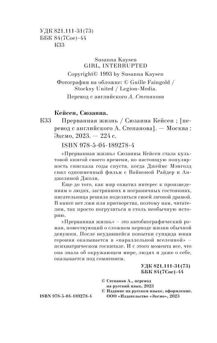 Книга: Прерванная жизнь (Сюзанна Кейсен); Эксмо, Редакция 1, 2023