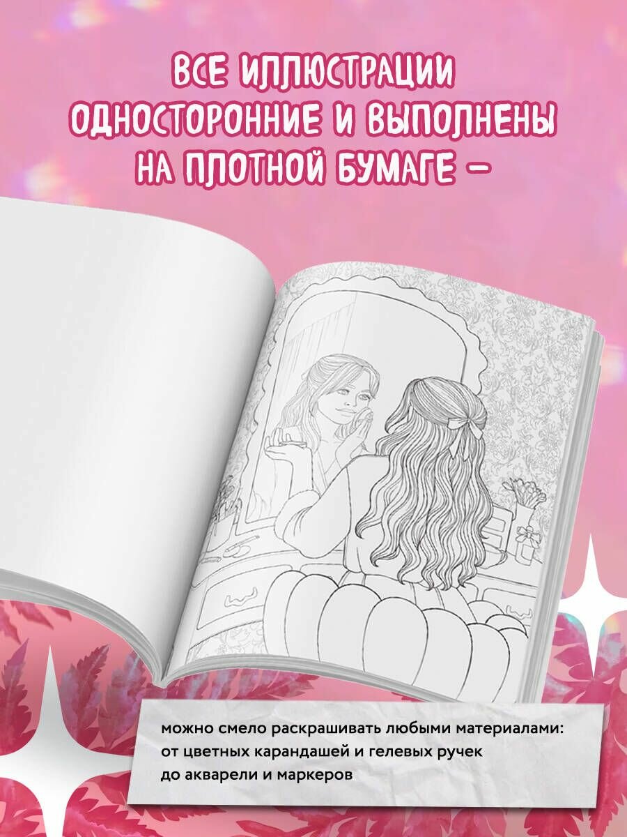 Весь мир погрузился в атмосферу Барбификации вслед за премьерой фильма про легендарных Барби и Кена. Настал твой черед! Бери лучшие ручки с блестками или самые розовые маркеры, вдохновляйся и воплощай свои фантазии вместе с авторской раскраской «Pink is the new black»! Внутри тебя ждет твой персональный Барбиленд: легендарный кабриолет Барби, очаровательные декорации кукольного домика, роскошные пальмы, красавчик Кен и многое другое, знакомое всем с детства. Настоящая находка для поклонников и поклонниц Марго Робби, Райана Гослинга и любимицы миллионов — куклы Барби.