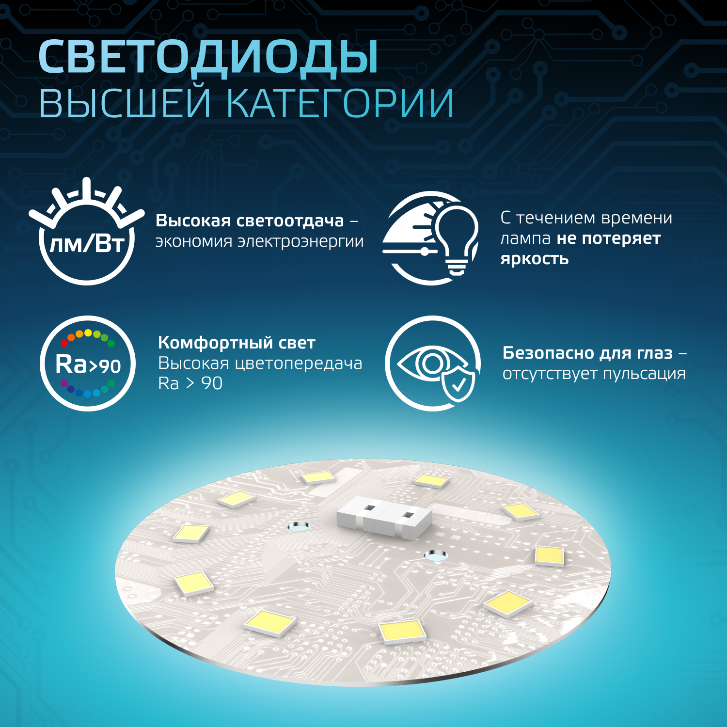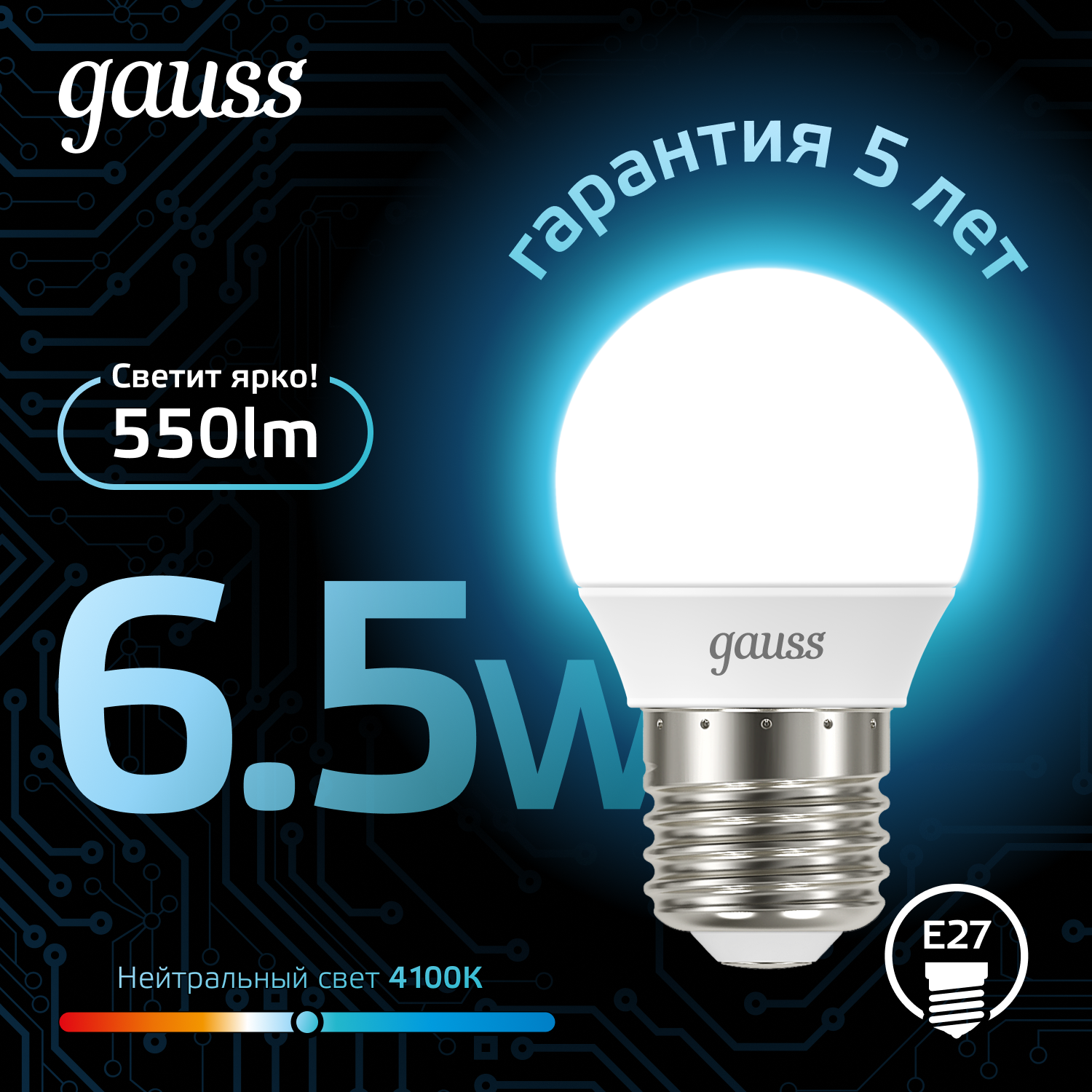 Светодиодная лампа Gauss — самый безопасный для здоровья и окружающей среды источник света. Она не пульсирует, мгновенно включается, не содержит ртути и имеет больший срок службы, чем лампы накаливания и КЛЛ. Более того, светодиодная лампа Gauss не зависит ни от скачков напряжения в сети, ни от температуры окружающей среды. Выдаёт максимальный световой поток в диапазоне от -20 до + 50 °С.