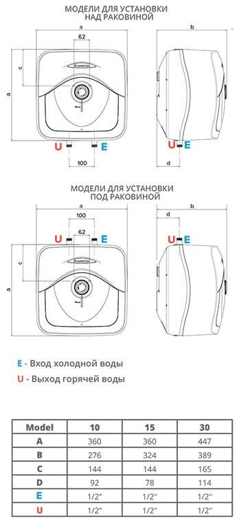 | Описание | Существенно экономит пространство, при этом обеспечивая горячей водой до двух точек водоразбора. Ручка регулировки, расположенная на передней части водонагревателя, позволяет легко задавать температуру воды, а устройство защитного отключения обеспечивает защиту от поражения электрическим током. |