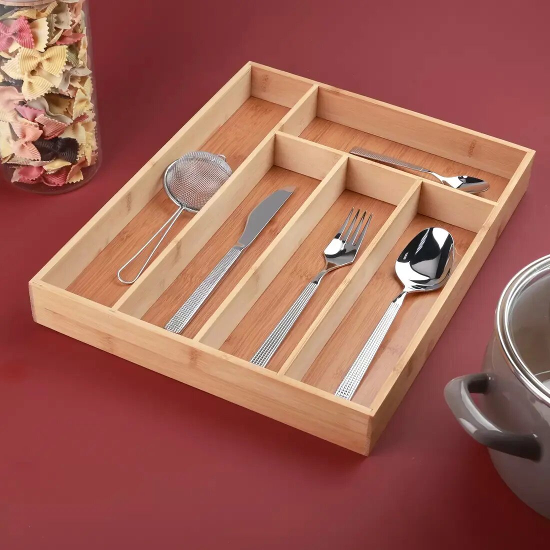 Предназначен для хранения столовых приборов и кухонных инструментов. Поможет грамотно организовать пространство внутри ящиков. Стильный и практичный дизайн в бамбуковом исполнении подойдет к любому интерьеру.
