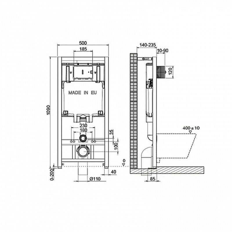 - Размеры инсталляции (ШхВхГ): 500х1090х235 мм.