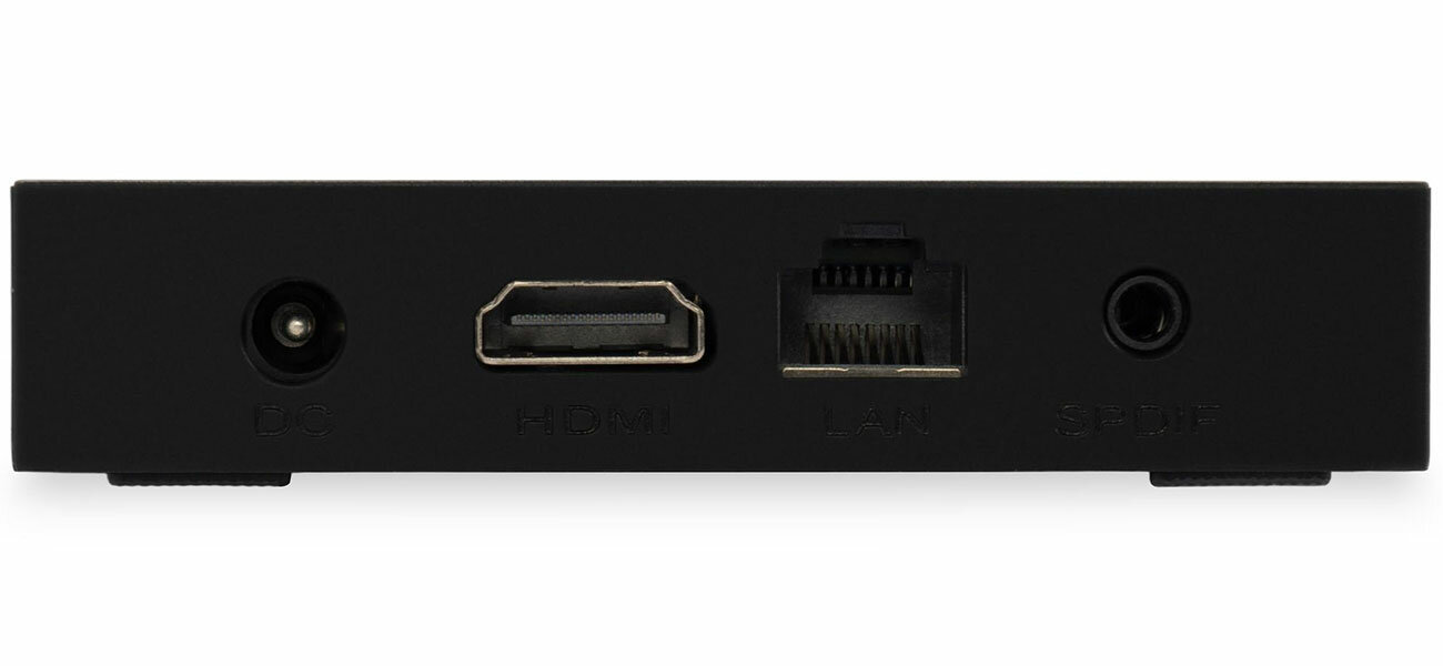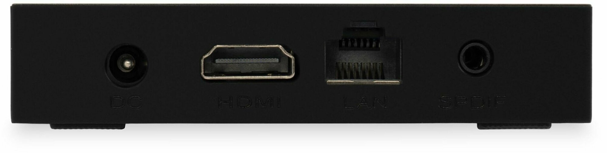 Плеер имеет два разъема USB 2.0 для подключения внешних накопителей и других устройств, а также поддерживает подключение к интернету через Wi-Fi сети стандартов 802.11a/b/g/n/ac на частотах 2,4 и 5 ГГц. Для вывода изображения используется разъем HDMI, поддерживающий разрешение до 2160p (Ultra HD), что позволяет наслаждаться высоким качеством изображения. Также плеер оснащен стерео аудиовыходом для подключения акустической системы и коаксиальным разъемом S/PDIF для передачи аудиосигнала в цифровом формате.