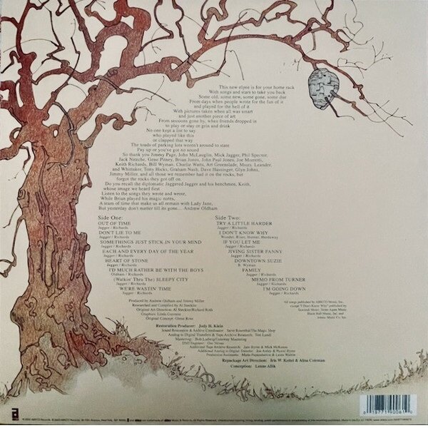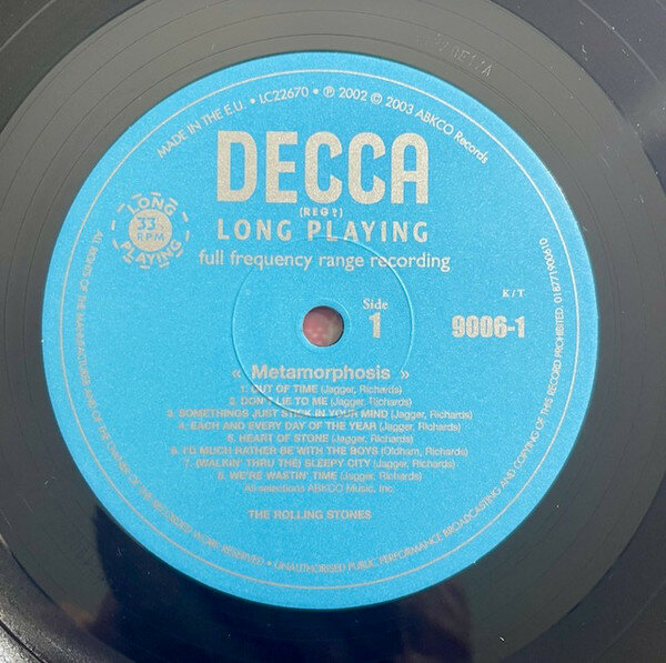 Metamorphosis - третий сборник песен Rolling Stones, выпущенный в 1975 году. На пластинке представлены купюры, демозаписи и различные раритеты, записанные в период с 1964 по 1970 год. Помимо того, что обложка пластинки отсылает к творчеству Ф.Кафки, она уникальна тем, что это всего один из двух альбомов группы, на котором изображен как Мик Тейлор (внизу слева), так и Брайан Джонс (справа внизу), хотя они не были членами коллектива в одно и то же время.