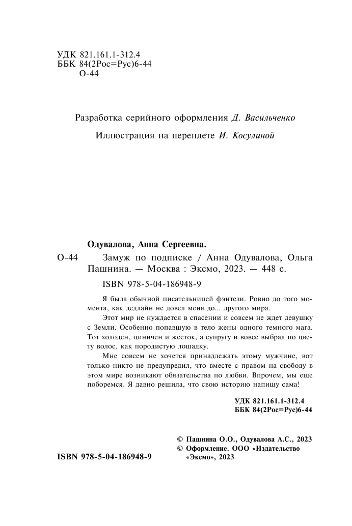 Книга: Замуж по подписке (Анна Одувалова); Эксмо, Редакция 1, 2023