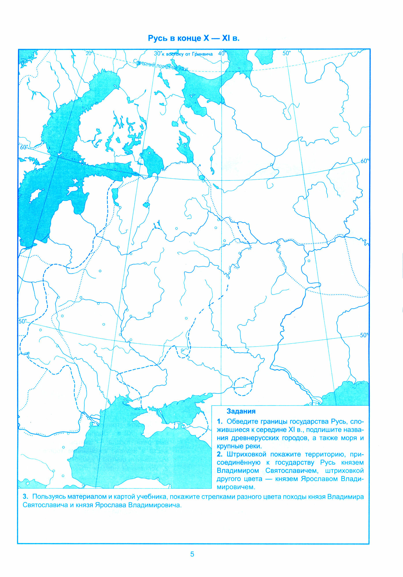 Прочитав название контурной карты, найдите в учебнике материал по этой теме, посмотрите карту в учебнике или в атласе по истории России для 6 класса. Все это поможет вам правильно выполнить задания, данные на контурной карте или предложенные учителем. Подписывайте реки вдоль их русла, города - поблизости от условного знака (пунсона), который обозначает город. Старайтесь делать свои подписи четко и аккуратно, можно печатными буквами, а штриховку - цветными карандашами, но не ярко, иначе не будут видны подписи и условные знаки, которые вы будете использовать. Работу с контурной картой обязательно начните с подписывания названий морей, рек, озер - эти географические объекты помогут вам сориентироваться при выполнении заданий по истории. Делайте это также с помощью учебника или атласа. Не копируйте карты атласа по истории, наносите на контурную карту только те объекты, знаки, надписи, даты и т.п., которые упоминаются в задании. Придумайте свои условные обозначения.