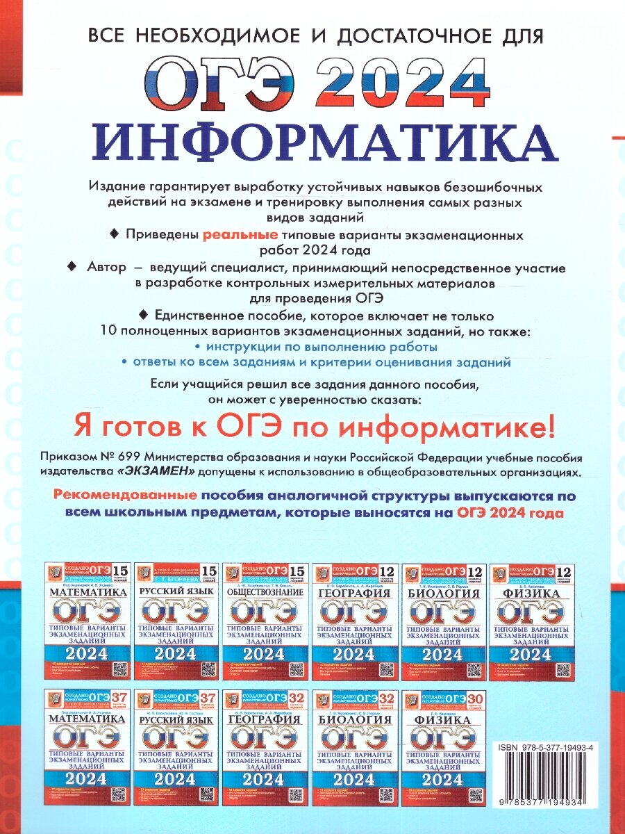 ОГЭ 2024. Информатика. Типовые варианты экзаменационных заданий. 10 вариантов заданий (Ушаков Денис Михайлович); Экзамен, 2024