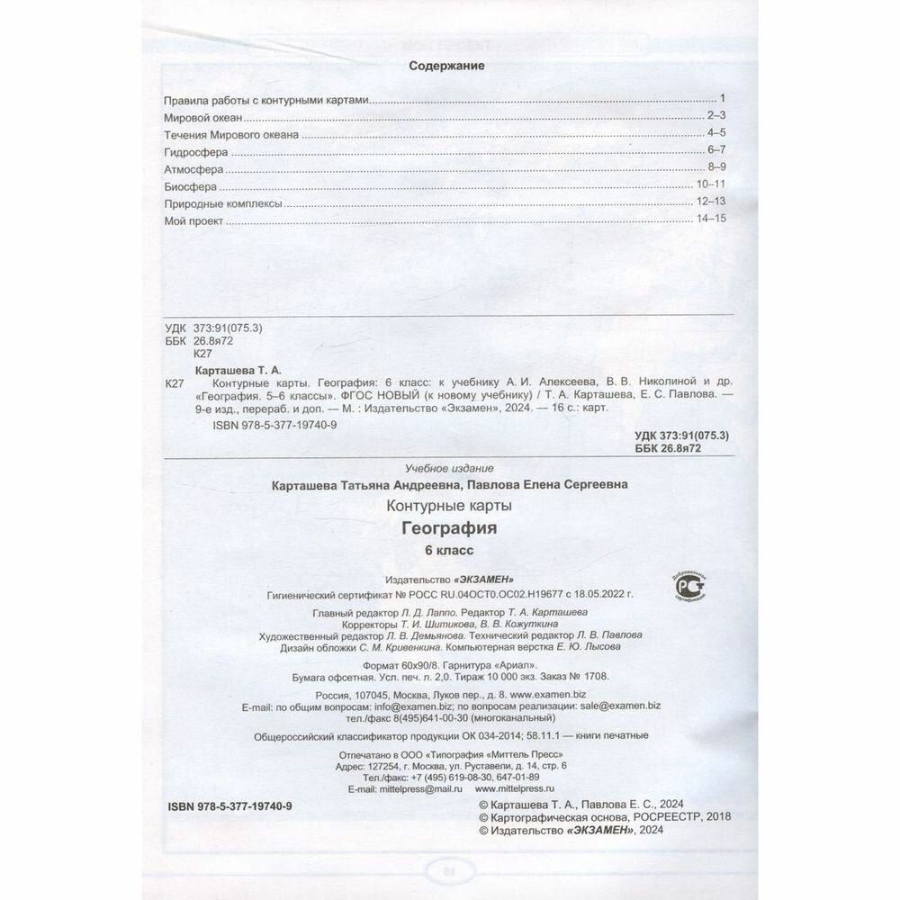 Контурные карты по географии. 6 класс. К учебнику А.И. Алексеева В.В. Николиной и др. "География. 5-6 классы" (Карташева Татьяна Андреевна,Павлова Елена Сергеевна); Экзамен, 2024