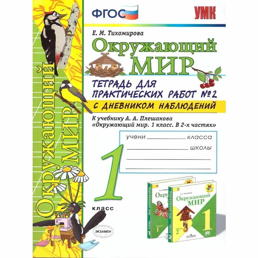 Окружающий мир. 1 класс. Тетрадь для практических работ № 2 с дневником наблюдений. К учебнику А.А. Плешакова "Окружающий мир. 1 класс. В 2-х частях. Часть 2" (Елена Михайловна Тихомирова); Экзамен, 2025