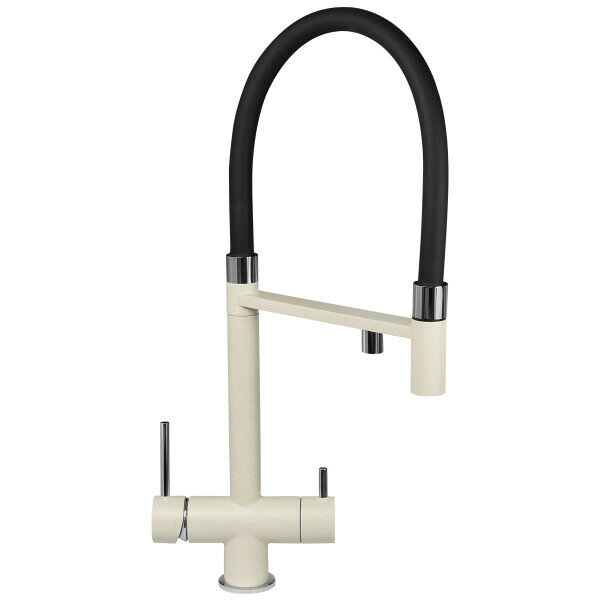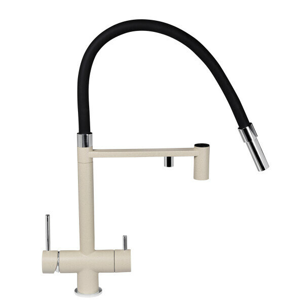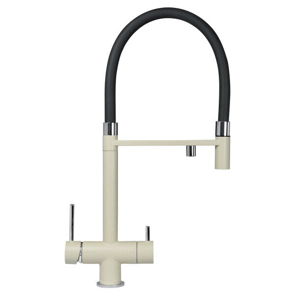Zigmund & Shtain ZS 2300 - это однорычажный смеситель для мойки с гибким изливом. Рычаг управления расположен сбоку. Смеситель изготовлен из высококачественной латуни, имеет элегантные пропорции, модный утилитарный дизайн и эргономичную ручку, обеспечивающую удобный захват. Продуманное цветовое решение модели идеально сочетается с любым кухонным интерьером и придает ему завершенность и лаконичность. Смеситель Zigmund & Shtain ZS 2300 имеет подключение к фильтру с питьевой водой. При данном подключении смеситель будет выдавать очищенную воду через дополнительный встроенный аэратор. Переключение на фильтр производится при помощи специального переключателя, который расположен снизу смесителя. В кухонном смесителе Zigmund & Shtain ZS 2300 установлен керамический картридж, который обеспечивает безупречную службу изделия в течение многих и многих лет. Собранные по итальянской технологии смесители Zigmund & Shtain имеют более чем долгий срок гарантии – 5 лет на корпус и 1 год на внешнее покрытие корпуса.
