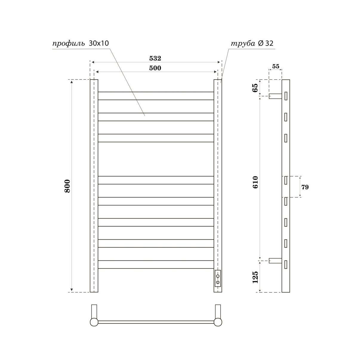 Электрический полотенцесушитель Point Селена PN16858GR П8 500x800 диммер справа Графит премиум (размер: 80x53 см)