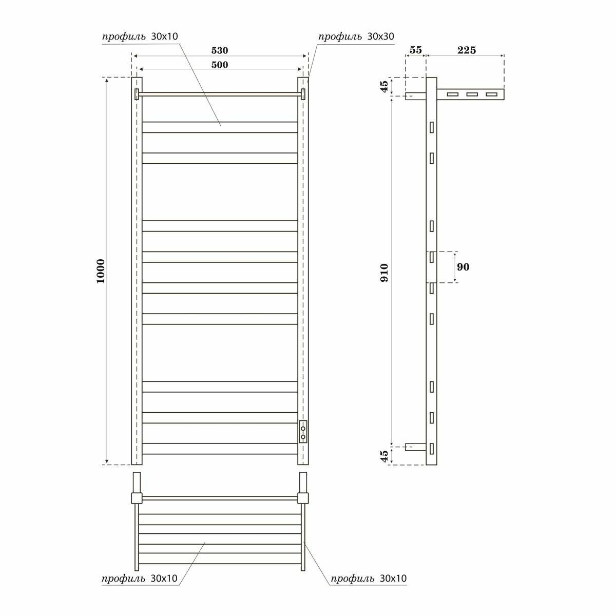 Сервис сравнения цен СкидкаГИД предлагает сравнить цены на товар «Электрический полотенцесушитель Point Меркурий PN83850PGR П9 500x1000 с полкой, диммер справа Графит премиум (размер: 100x53 см)»