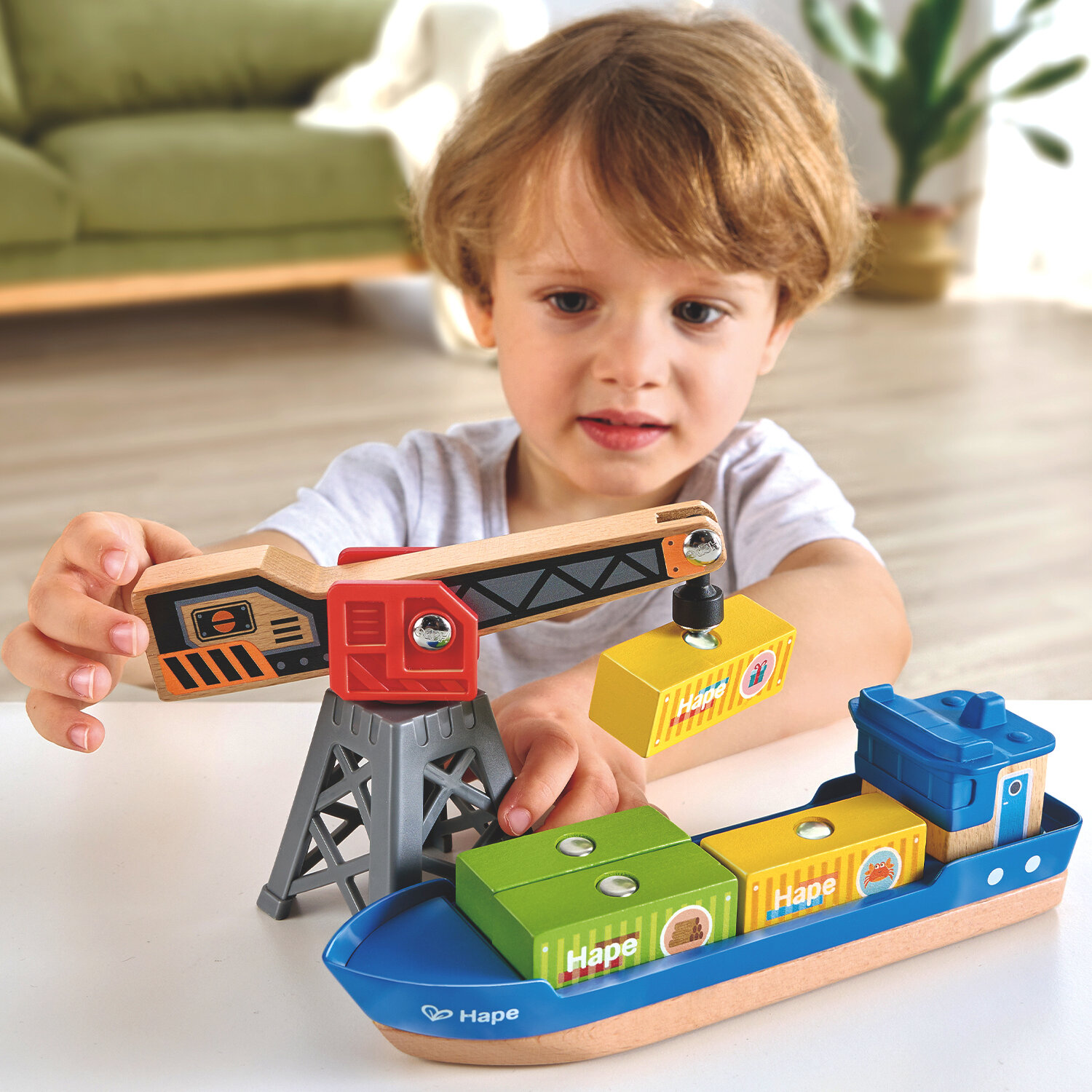 Игровой набор Грузовой корабль и подъемный кран серия У моря Hape E3792_HP
