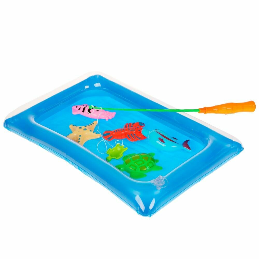 С помощью этого яркого набора ребёнок сможет самостоятельно заняться рыбной ловлей. Для удобной и захватывающей игры в наборе есть надувной бассейн для морских обитателей.
