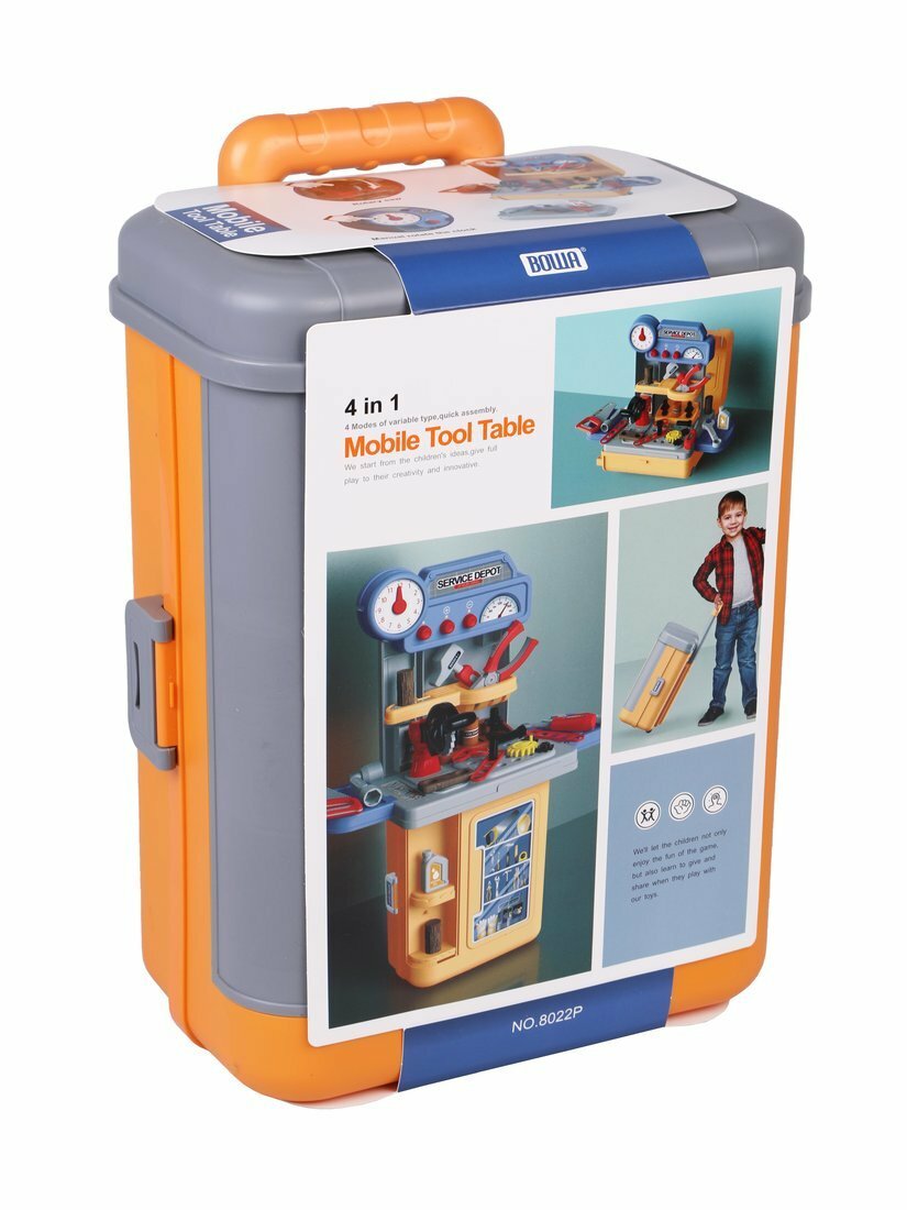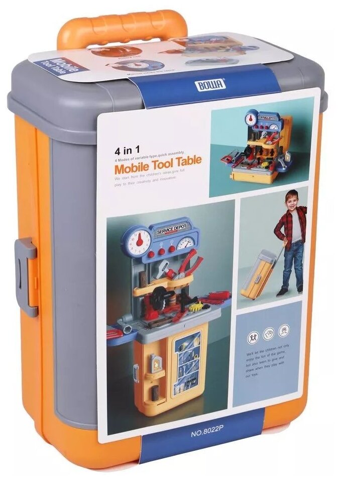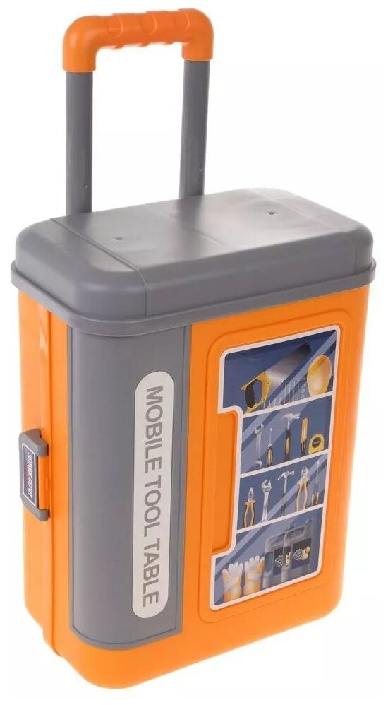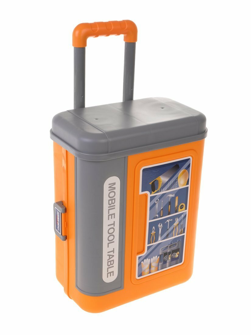 В комплекте – 39 предметов: детали для сборки столика подмастерья, пила, отвёртка, плоскогубцы, гаечный ключ, винты, гайки и не только!