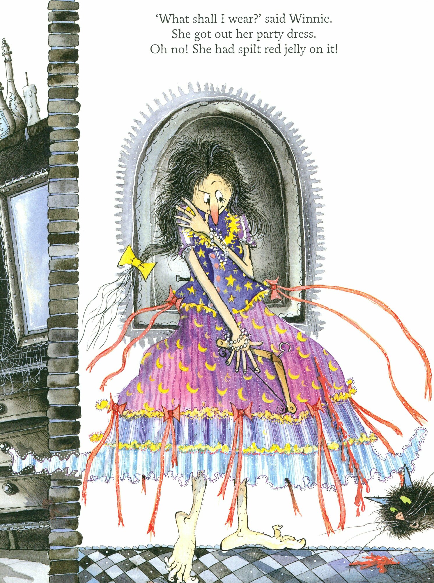 Winnie has made a big mistake. She's washed her party dress in the washing machine. But she's washed her magic wand as well. And now it doesn't work, it's broken, it isn't magic anymore. What is she going to do? How can she make magic spells? How can she perform at the witches' magic show? Perhaps Wilbur can help? Perhaps . . .