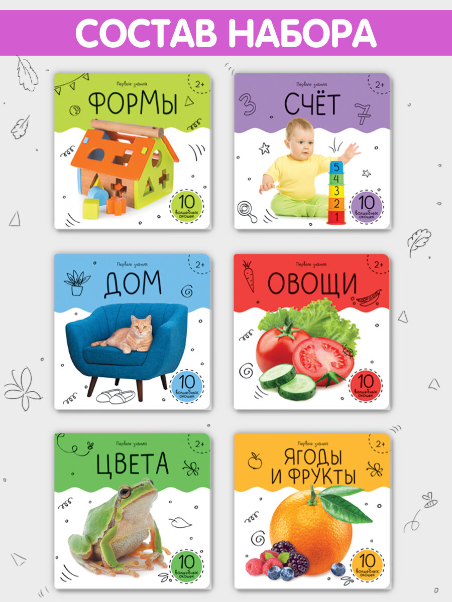 Вашему вниманию предлагается набор из 6 книг с окошками "Первые знания".