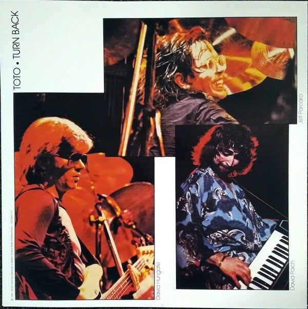 Turn Back - переиздание дебютного студийного альбома американской рок-группы Toto, первоначально выпущенного в 1981 году. Альбом стал самым непопулярным альбомом Toto за всю историю их существования. Группа пыталась найти свой собственный стиль, отличительный от других коллективов. Во время записи музыканты вдохновлялись творчеством британской рок-группы Queen, а продюсером их альбома стал Джефф Уоркмен. Композиция @Live for Today@ была написана в одиночку Стивом Люкатером. Релиз представлен на черном виниле и включает постер. Toto - американская музыкальная группа, исполняющая прогрессивный рок, поп-рок, хард-рок и софт-рок. Первоначально в состав коллектива входили Дэвид Пейч (вокал, клавишные), Стив Люкатер (гитара, вокал), Бобби Кимболл (вокал), Стив Поркаро (клавишные), Джефф Поркаро (ударные, перкуссия), Дэвид Хангейт (бас-гитара). Группа была образована в Калифорнии в 1977 году. Коллектив сумел органично соединить прогрессивный рок, ритм-энд-блюз и хард-рок, сплав которых и был представлен на дебютном альбоме под названием Toto, а также освоить такие направления как соул, фанк и джаз. Пик популярности Toto пришёлся на конец 1970-х - начало 1980-х годов. Композиция Hold the Line с дебютной пластинки стала первым коммерчески успешным синглом группы, а в 1982 году был издан самый удачный в этом отношении альбом коллектива - Toto IV, благодаря которому группа была номинирована на Грэмми в номинации Открытие года. Toto получили Грэмми в номинациях Альбом года и Запись года, а песни с Toto IV - Africa и Rosanna - долгое время царили в эфире американских радиостанций. Пластинка стала трижды платиновой в США, и золотой - в Великобритании. Последующие релизы группы не смогли повторить этого успеха. Коллектив Toto также написал музыку, вошедшую в саундтрек фильма Дэвида Линча Дюна (1984).