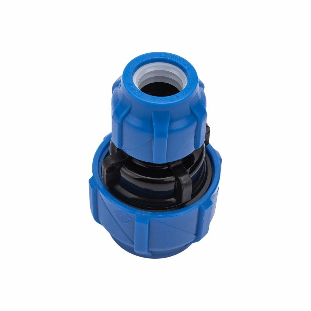 **Муфта Valfex** — переходной элемент, который служит для соединения труб между собой, перехода с одного диаметра на другой. Изготовлен из ПНД. Используется в разных сферах при сооружении коммуникаций для отопления, канализации, водо- и газоснабжения. Для установки достаточно вставить полиэтиленовую трубу во втулку, зафиксировать и прокрутить гайку (крышку).