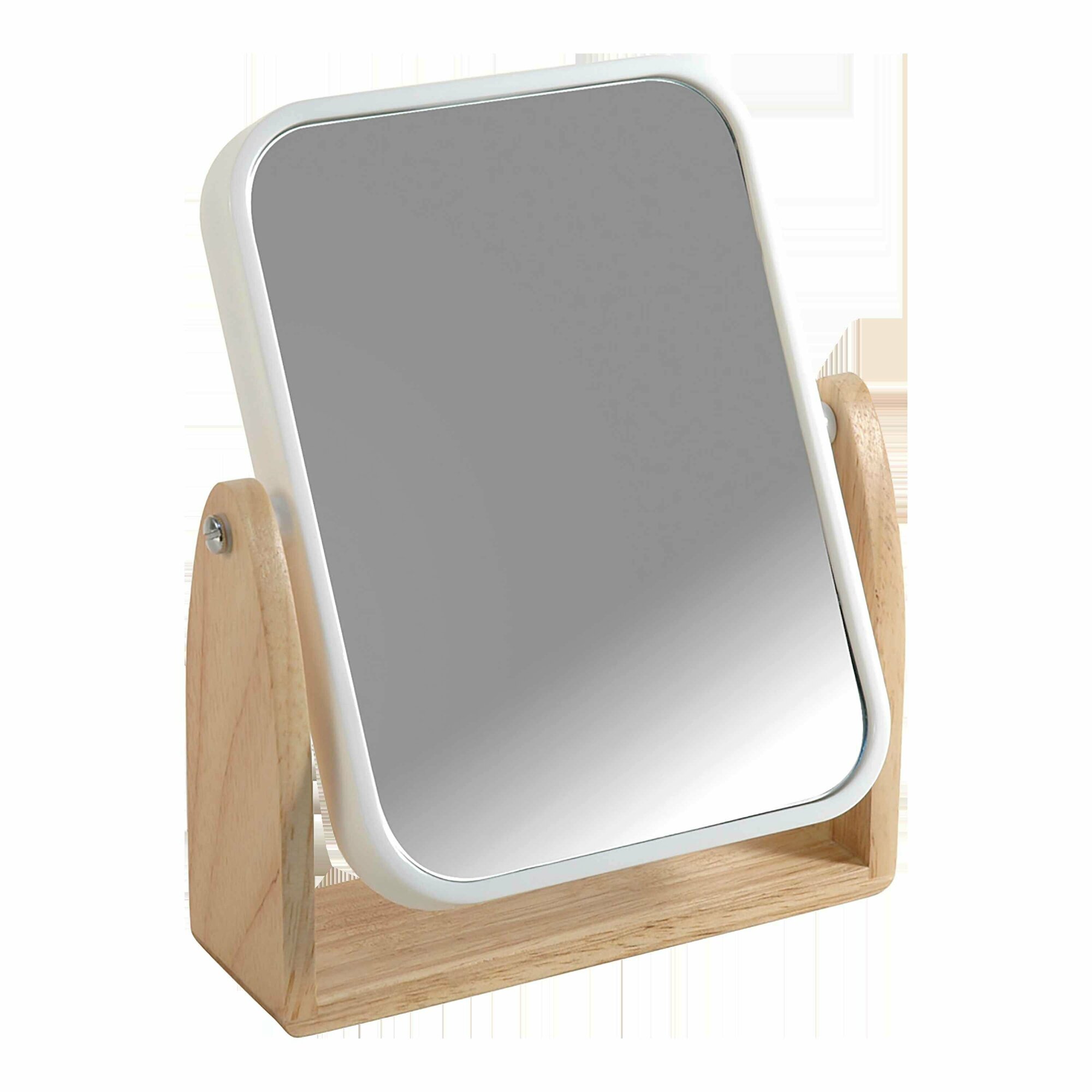**Зеркало косметическое Sensea Scandi** предназначено для установки на столе или полке в ванной. Оно имеет компактные размеры, при этом его удобно использовать при нанесении макияжа. Прямоугольное зеркало вставлено в тонкую раму. Подставка обеспечивает устойчивость изделия на горизонтальной поверхности: оно не заваливается при установки и передвижении.