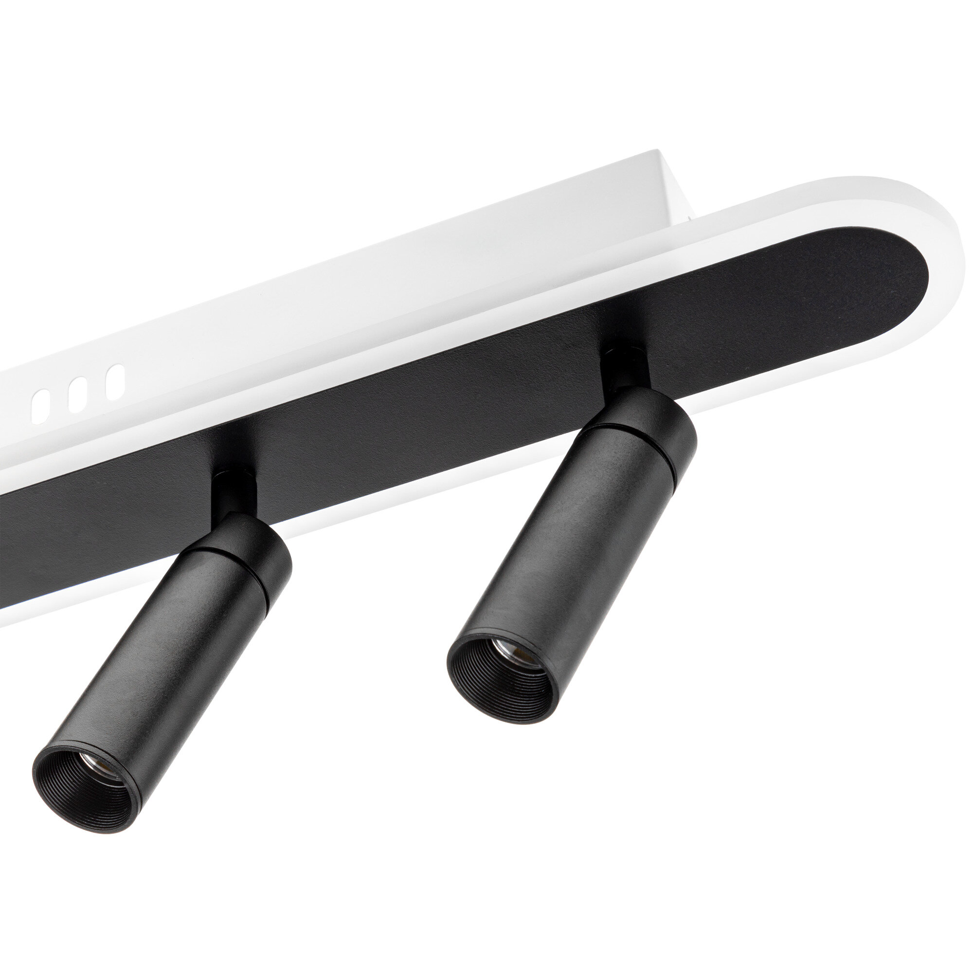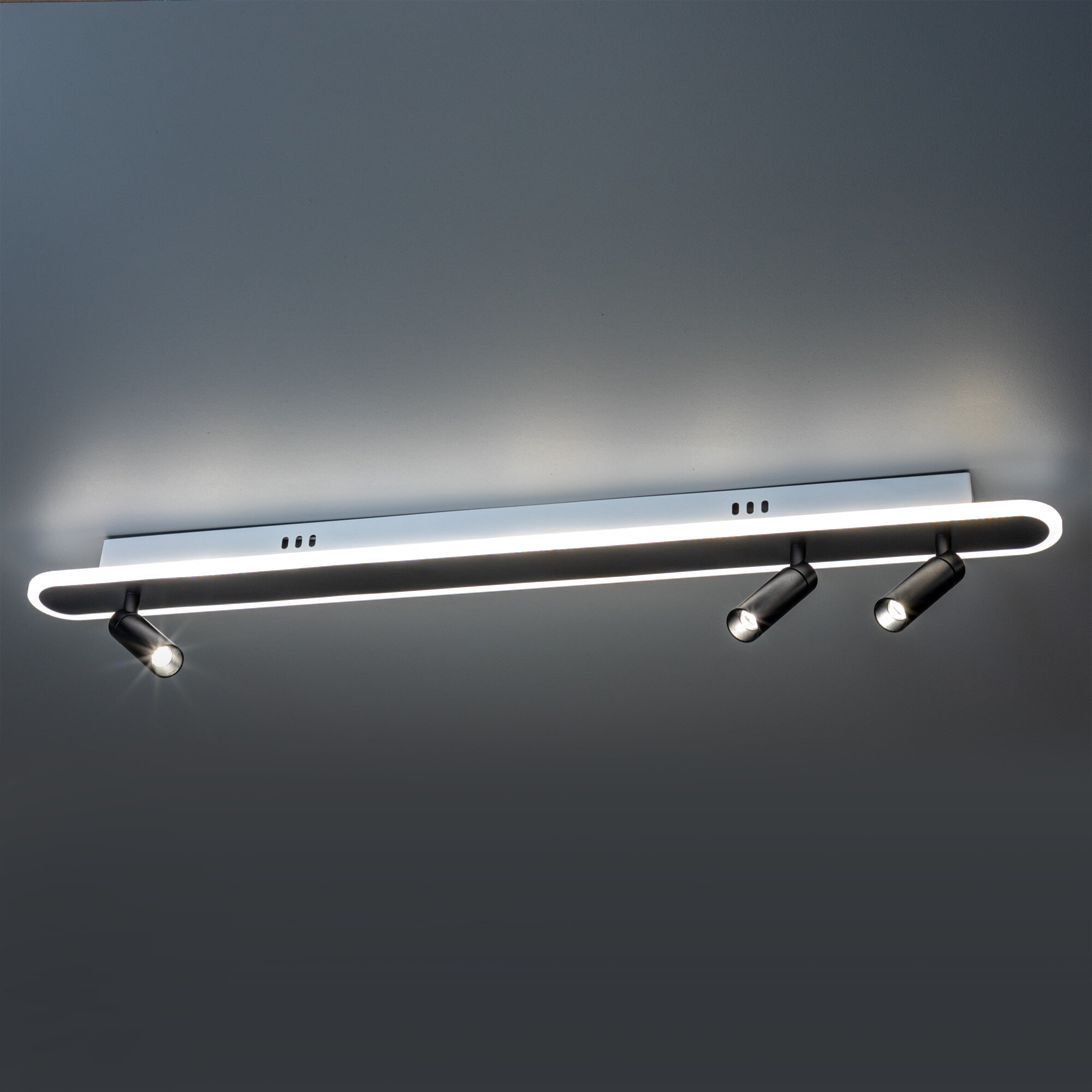 **Светильник светодиодный «Lanterna» 516020** с плафонами в дизайнерском стиле выполнен в черно-белом цвете. Площадь освещения составляет до 18 м², подходит для жилых помещений, салонов красоты или фотостудий. Благодаря разнонаправленному направлению плафонов, свет можно сфокусировать на нужном объекте или участке в комнате. В освещении можно менять оттенки белого цвета с холодных до теплых тонов с помощью пульта ДУ. Доступные параметры — 2700, 4000, 6400 К. Крепится с помощью планки и может устанавливаться на низкие потолки.