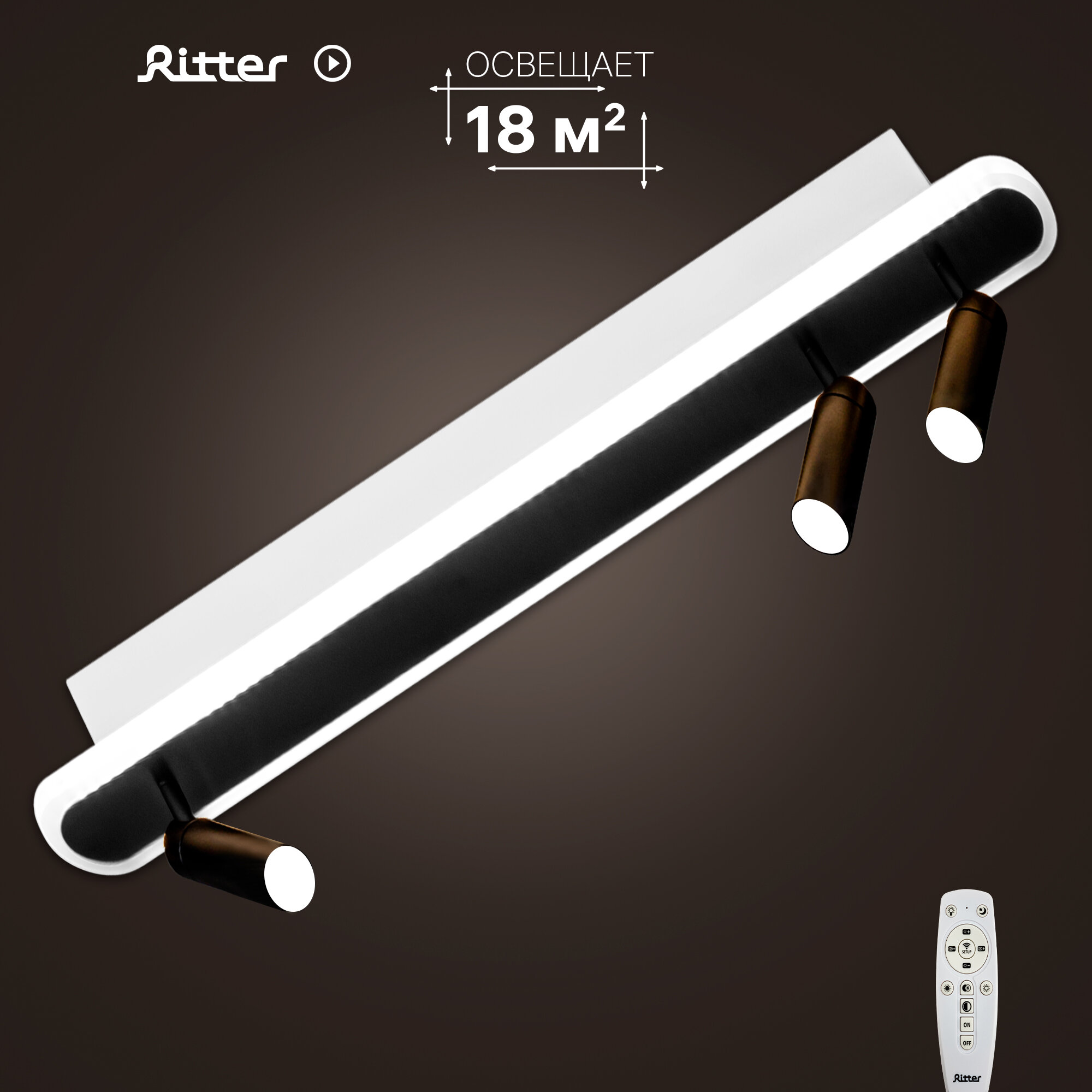 Светильник светодиодный «Lanterna» 516020 с пультом управления 18 м² регулируемый белый свет цвет черный RITTER