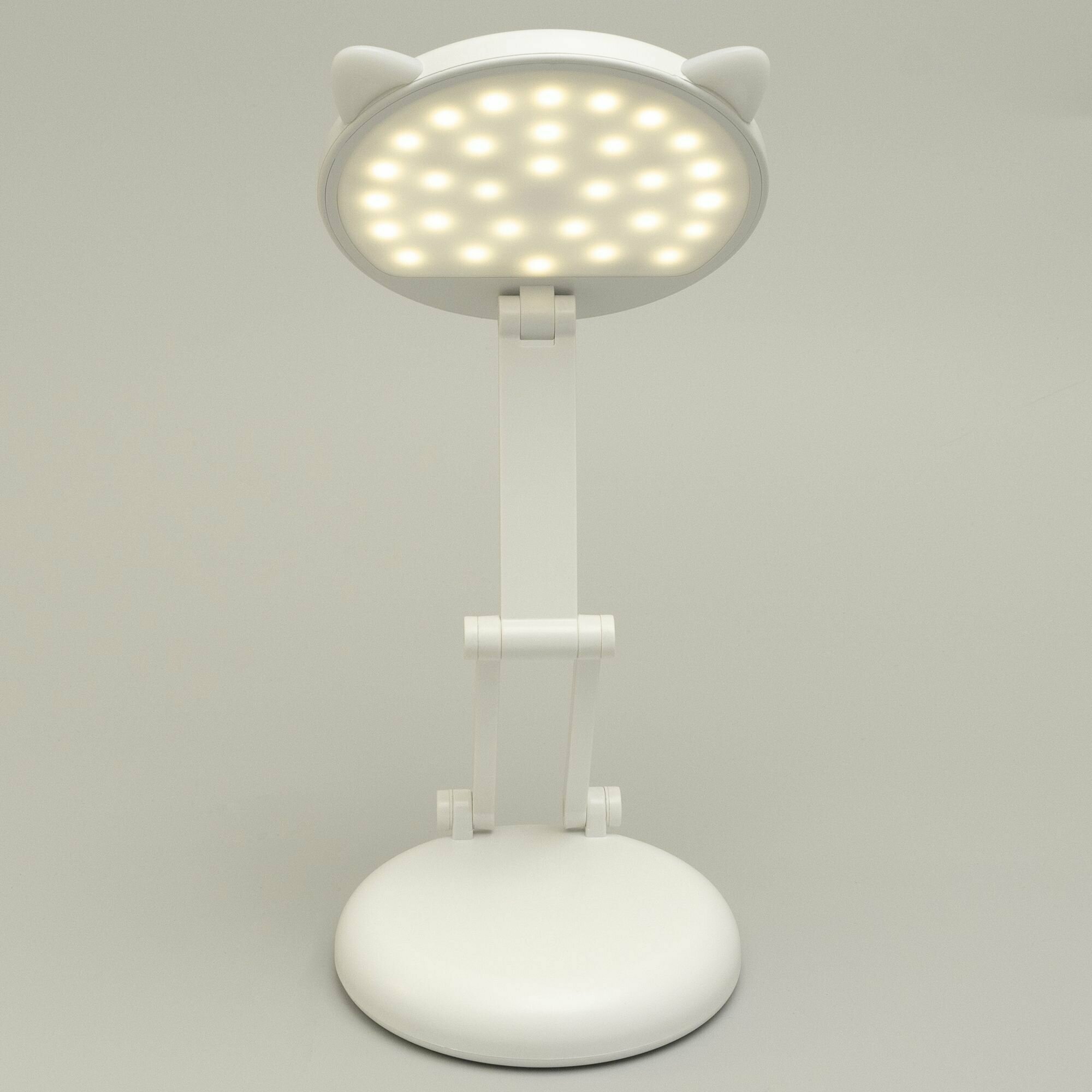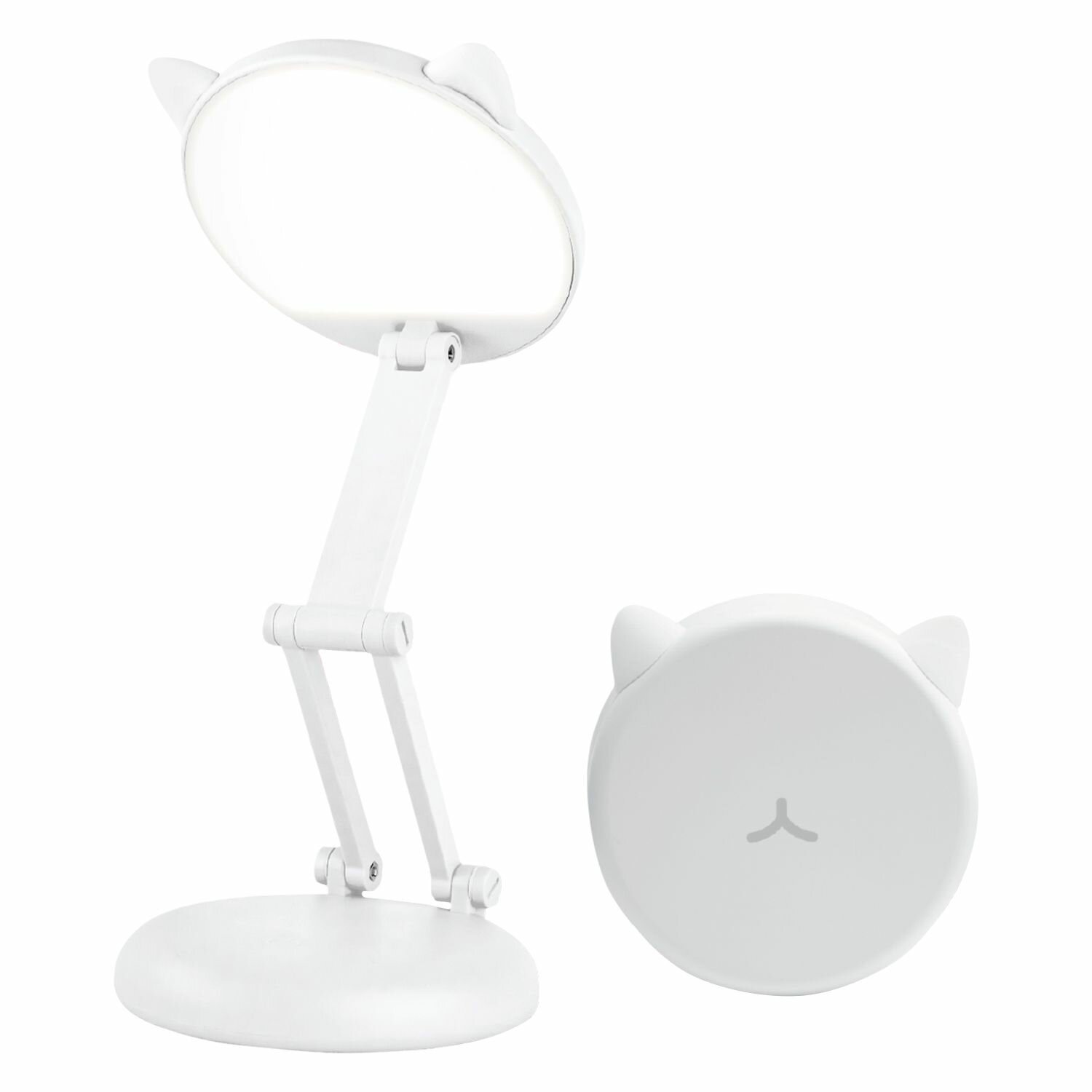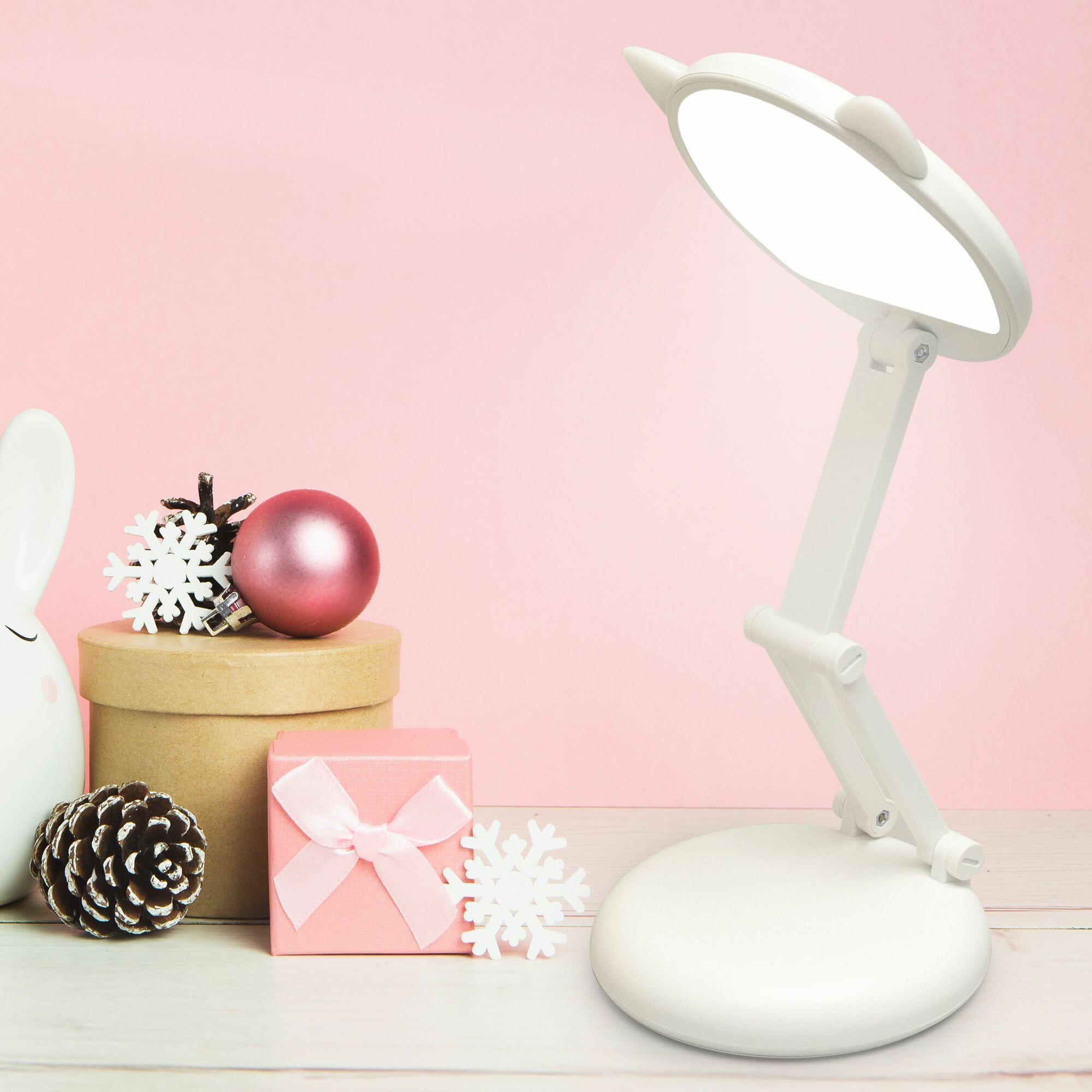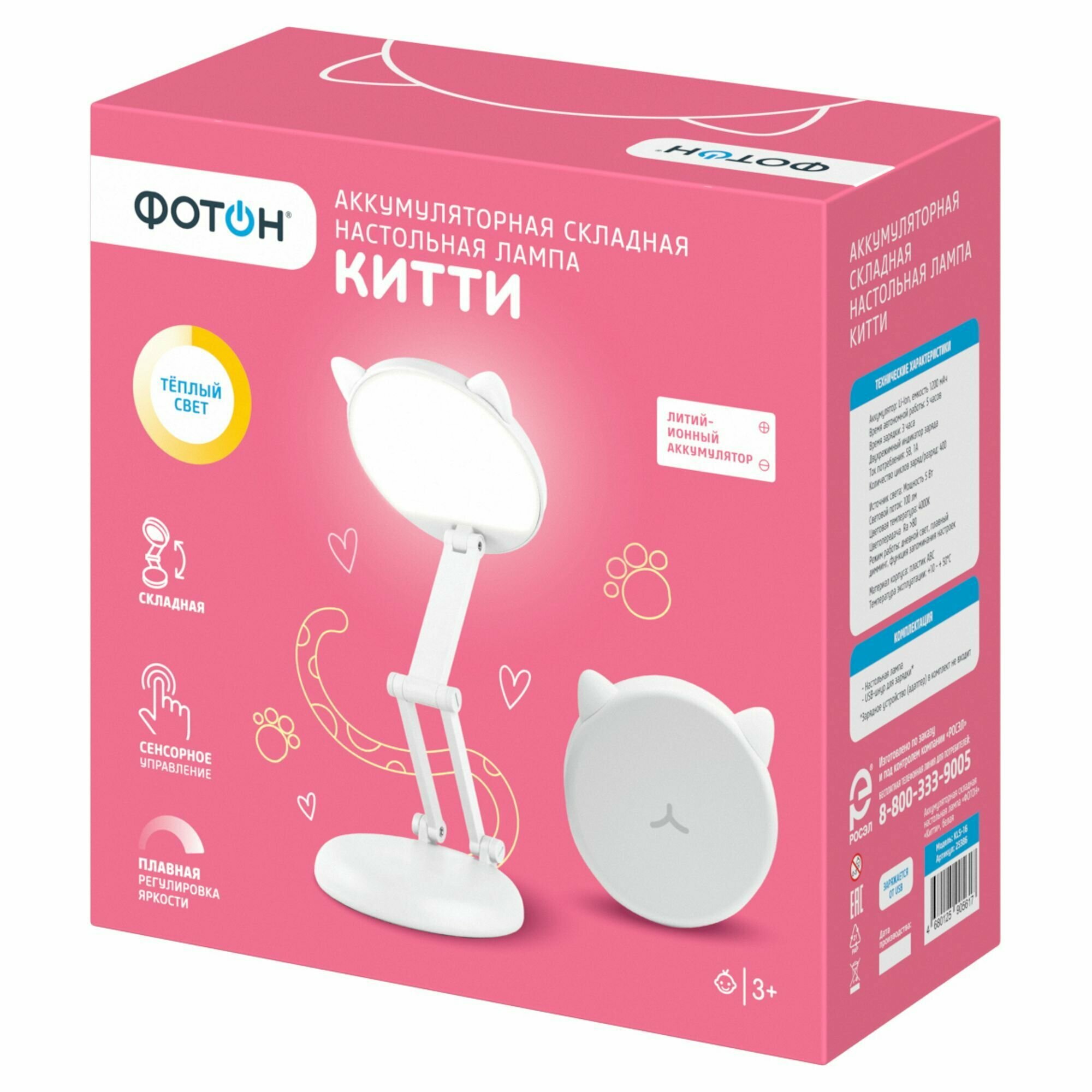 Аккумуляторный настольный светильник Китти с сенсорным управлением, цветовой температурой 4000К и плавной регулировкой яркости удобен и прост в использовании и отлично подойдет для детской комнаты. Благодаря складной конструкции может регулироваться по высоте, менять угол освещения, а также складываться в компактный переносной светильник. Питание: аккумулятор Li-ion, емкость 1200 мАч, подзарядка через USB провод (в комплекте). Время работы без подзарядки: 5 ч.