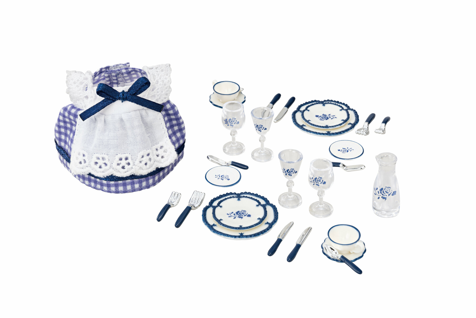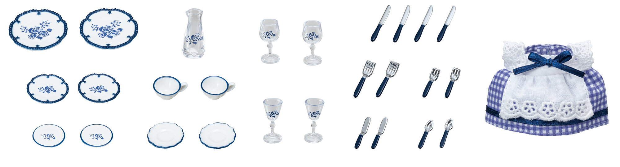 •В комплект входит роскошное платье тех же цветов, что и посуда: сочетание белого и синего оттенков подойдет для взрослой фигурки из других наборов Sylvanian Families.