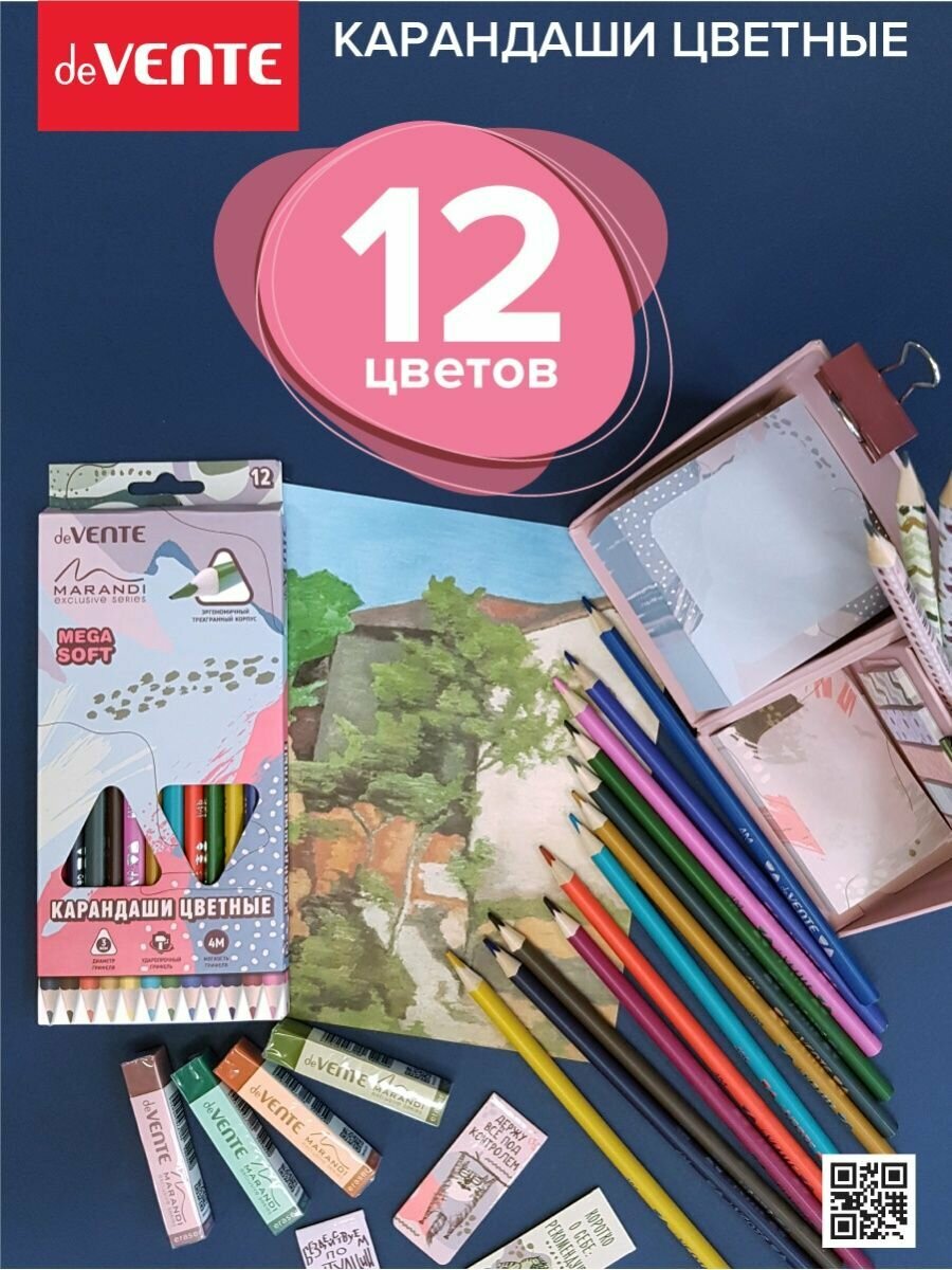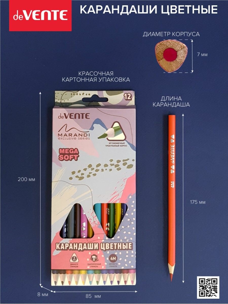 Карандаши цветные Marandi трехгранные 12 цветов deVENTE