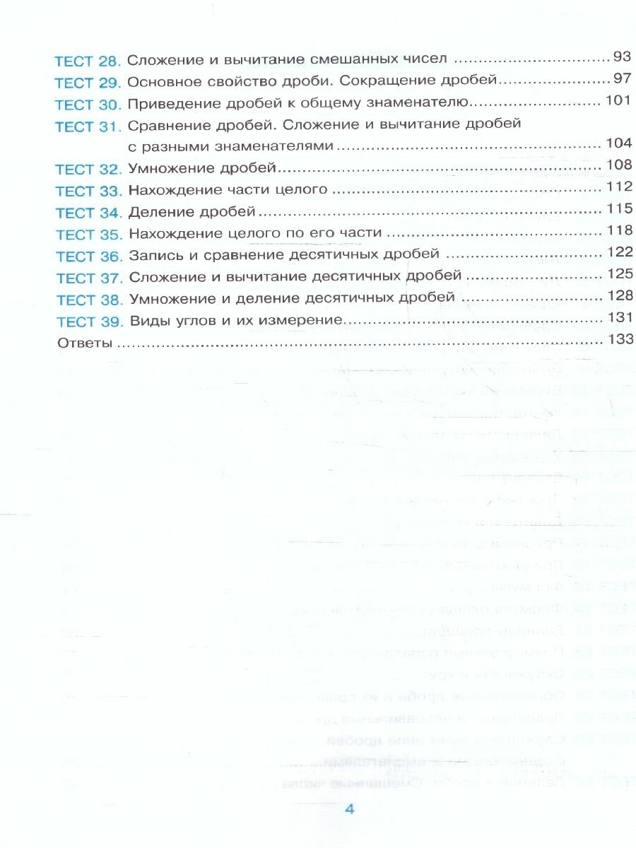Данное пособие полностью соответствует федеральному государственному образовательному стандарту. "Тесты по математике. 5 класс" являются составной частью учебно-методического комплекта к учебнику Н. Я. Виленкина и др. "Математика. 5 класс. В двух частях". В книге представлены тестовые задания по всем основным темам курса. Всего в сборнике 39 тестов, каждый из которых предлагается в двух вариантах, примерно одинакового уровня трудности. Ко всем тестовым заданиям даются ответы, помещённые в конце сборника. Время выполнения одного теста - 15-20 минут.