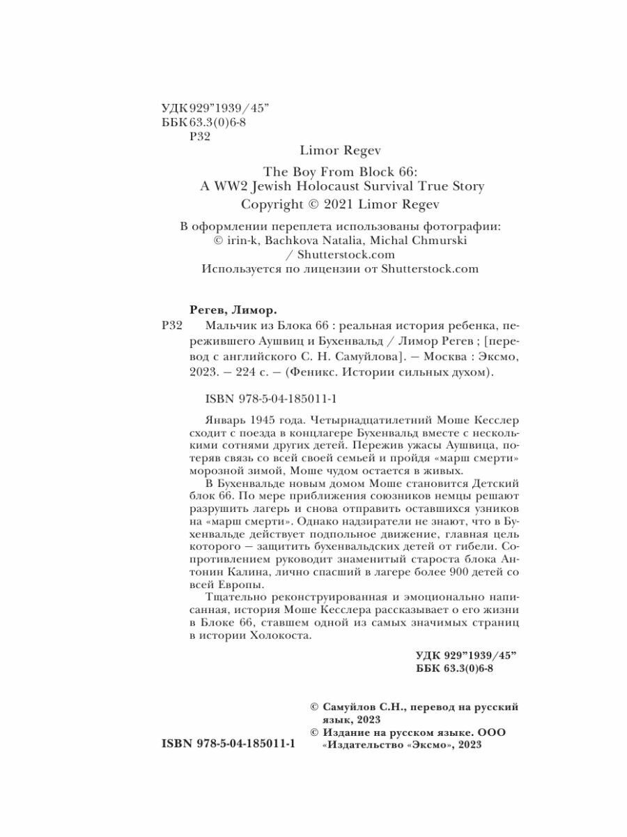 Мальчик из блока 66. Реальная история ребенка пережившего Аушвиц и Бухенвальд (Лимор Регев); Эксмо, Редакция 1, 2025