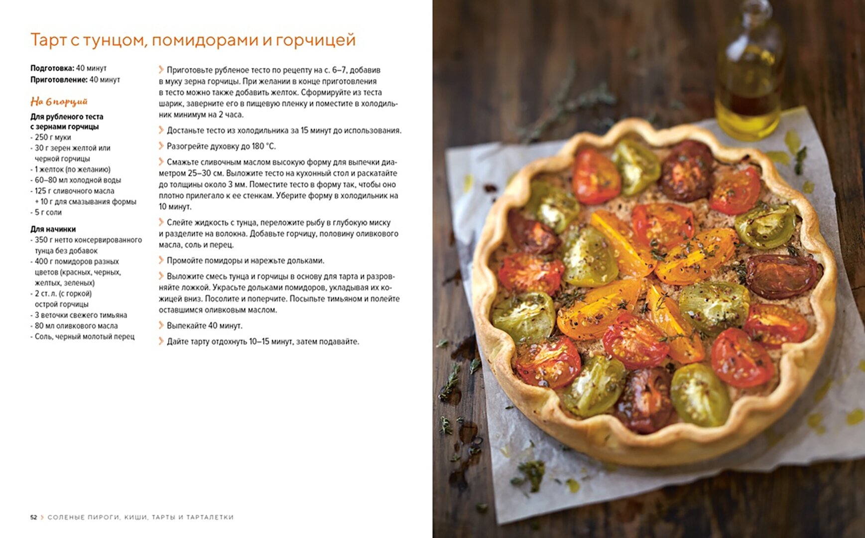 Что может быть лучшим украшением стола, чем свежеиспеченный пирог? Представляем коллекцию классических и оригинальных рецептов соленых и сладких пирогов, тартов, кишей и тарталеток, которые откроют вам настоящее богатство вкуса. Пирог с сыром конте, ветчиной и пряными травами, тарт с луком конфи, кедровыми орехами и карри, плетеный пирог с курицей, нежный тарт с медом и грецкими орехами, зеркальный тарт с шоколадом и карамелизированным арахисом, плетеный пирог с вареньем из инжира и обжаренным миндалем... Здесь вы найдете не только рецепты вкуснейшей выпечки, но и техники, полезные советы и варианты наполнителей для теста. И конечно же мы поможем вам подобрать напиток к каждому пирогу и тарту!