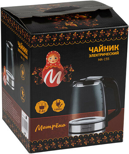 Электрический чайник Матрёна 2.2 л стекло черный 105230 предназначен для использования в офисе или дома.
