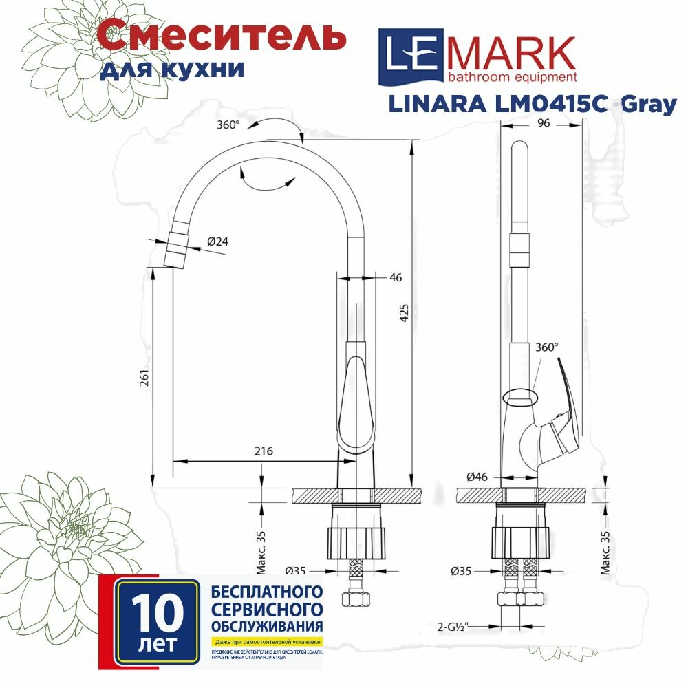 Смеситель для кухни Lemark Linara LM0415C-Gray.