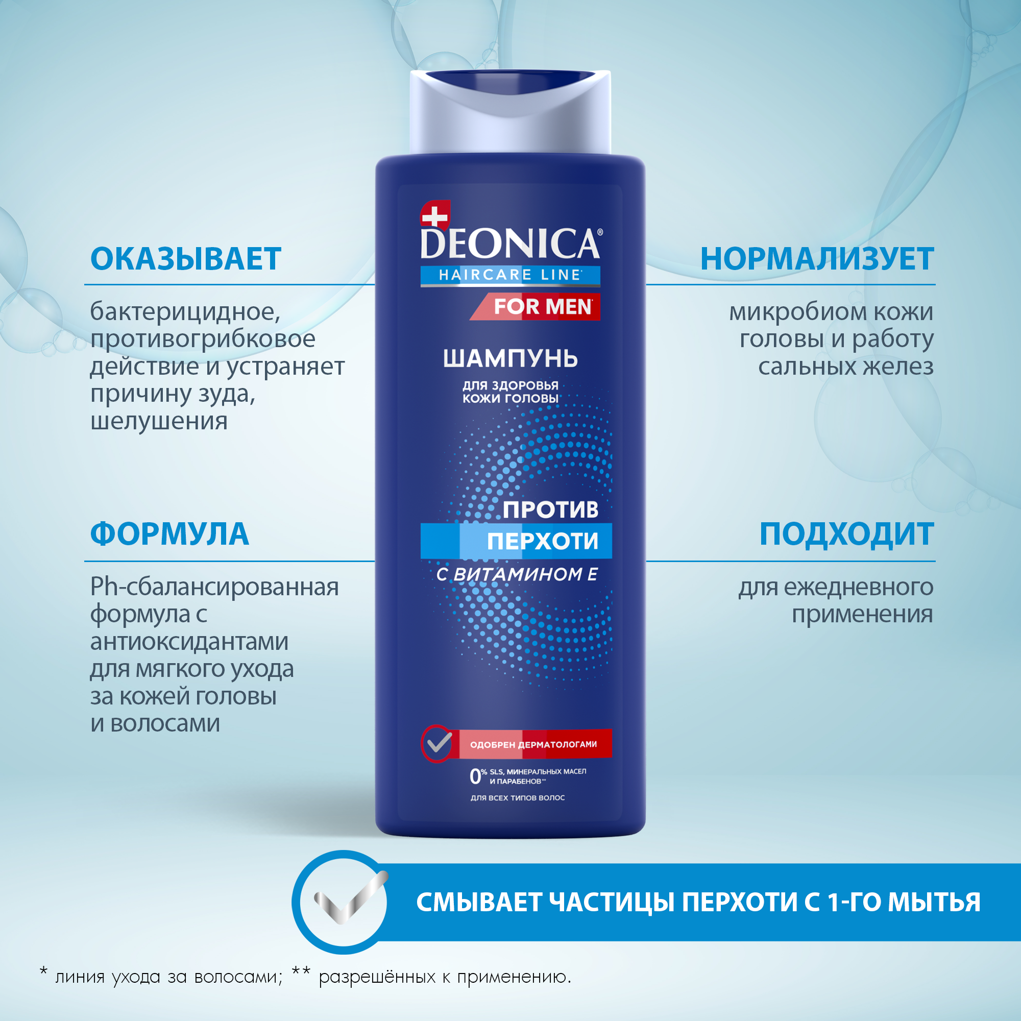 Идеальное решение для избавления от перхоти Шампунь от перхоти Deonica: