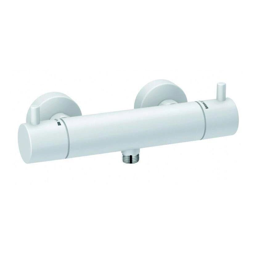 Смеситель для душа. С термостатом. Цвет-белый матовый. Механизм: термостатический картридж с ограничителем горячей воды. Клапан защиты от обратного потока. Стандарт подводки: G 1/2. В комплекте поставки: смеситель, комплект креплений